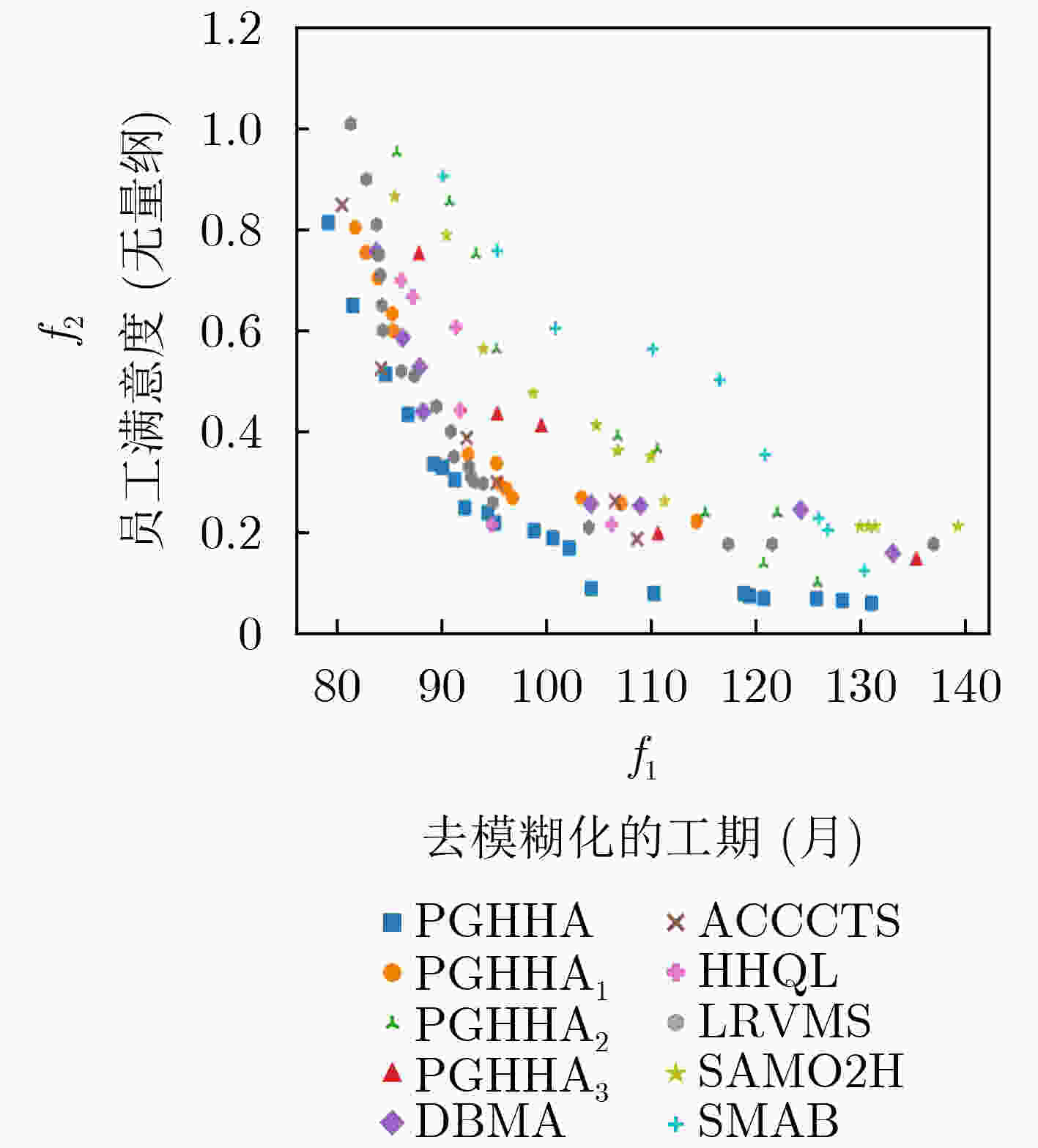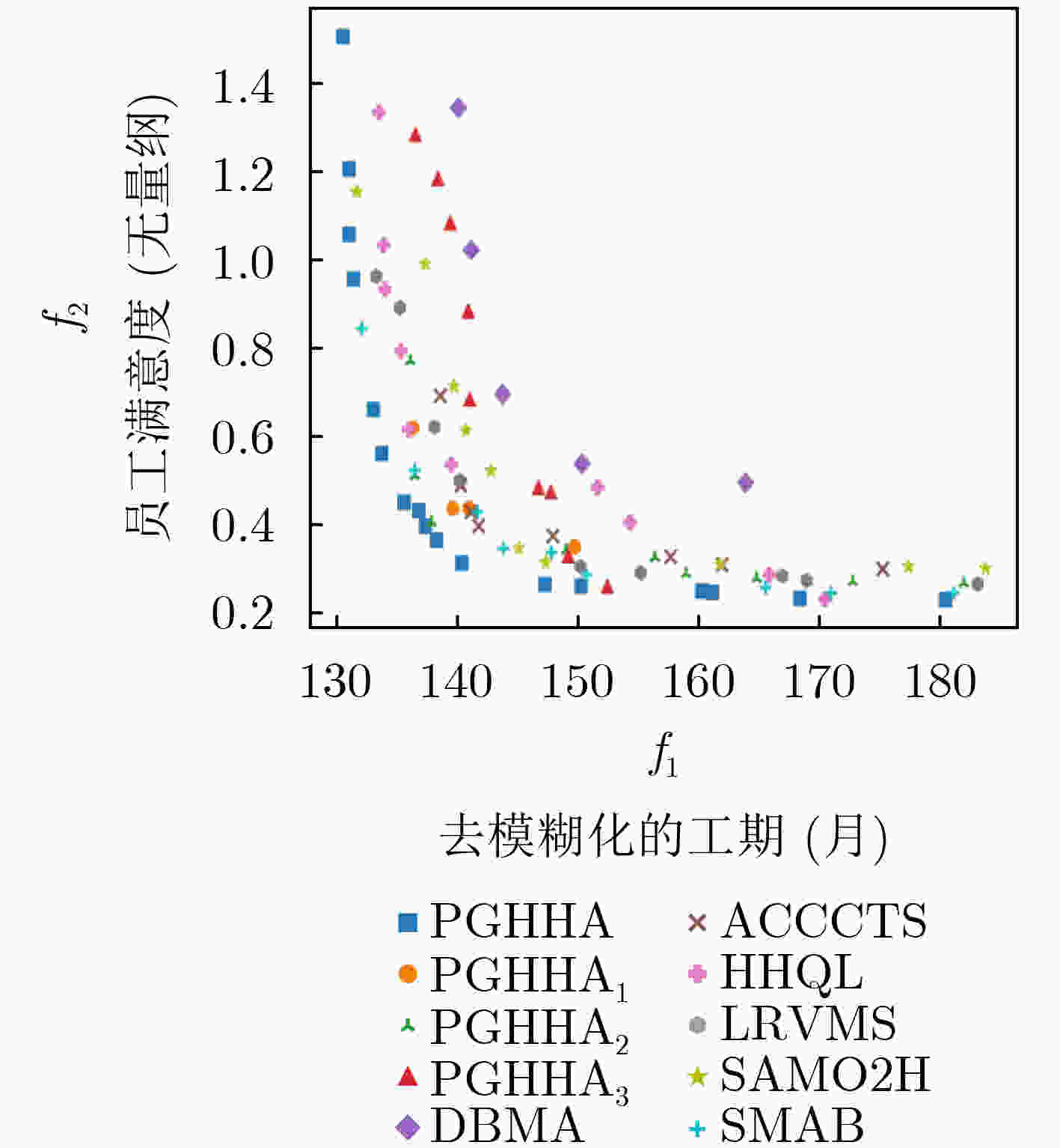 算例 PGHHA PGHHA1 PGHHA2 PGHHA3 HVR IGD HVR IGD HVR IGD HVR IGD 10M-10N-5S 0.99250 0.09220 0.98400 =0.12346 +0.96899 +0.21161 +0.97471 +0.14761 +10M-15N-5S 0.95844 0.05834 0.89655 +0.20335 +0.93145 +0.17469 +0.81489 +0.29439 +10M-15N-10S 0.94790 0.11968 0.87704 +0.26172 +0.92149 +0.18779 +0.80562 +0.29297 +15M-20N-5S 0.98163 0.08262 0.79431 +0.38438 +0.90486 +0.15519 +0.77907 +0.38811 +15M-20N-10S 0.97927 0.11605 0.74462 +0.29048 +0.77350 +0.23512 +0.76558 +0.27590 +15M-30N-5S 0.96563 0.09172 0.74232 +0.23335 +0.79543 +0.24815 +0.69608 +0.31365 +15M-30N-10S 0.97375 0.08377 0.41407 +0.45349 +0.86138 +0.17924 +0.78636 +0.29754 +20M-30N-5S 0.99449 0.04014 0.76834 +0.23783 +0.79635 +0.18083 +0.76224 +0.26607 +20M-30N-10S 0.97315 0.17456 0.49679 +0.46848 +0.57295 +0.37948 +0.76702 +0.24577 +20M-40N-10S 0.87440 0.07848 0.71880 +0.15870 +0.63450 +0.12640 +0.70570 +0.12980 +25M-40N-10S 0.95382 0.09408 0.89277 +0.15278 +0.84310 +0.13515 +0.87307 +0.19490 +30M-40N-10S 0.94910 0.10911 0.89051 +0.18086 +0.86931 +0.17546 +0.89889 +0.18816 +Real-1 0.98426 0.10089 0.78669 +0.31839 +0.79828 +0.30680 +0.76297 +0.35578 +Real-2 0.96564 0.05132 0.84702 +0.12234 +0.86167 +0.09253 +0.83655 +0.17651 +Real-3 0.97003 0.22431 0.94249 +0.37577 +0.96009 =0.32971 +0.92067 +0.29233 ++/–/= 14/0/1 15/0/0 14/0/1 15/0/0 15/0/0 15/0/0 表 6 所提算法的性能验证实验中6种算法的对比结果