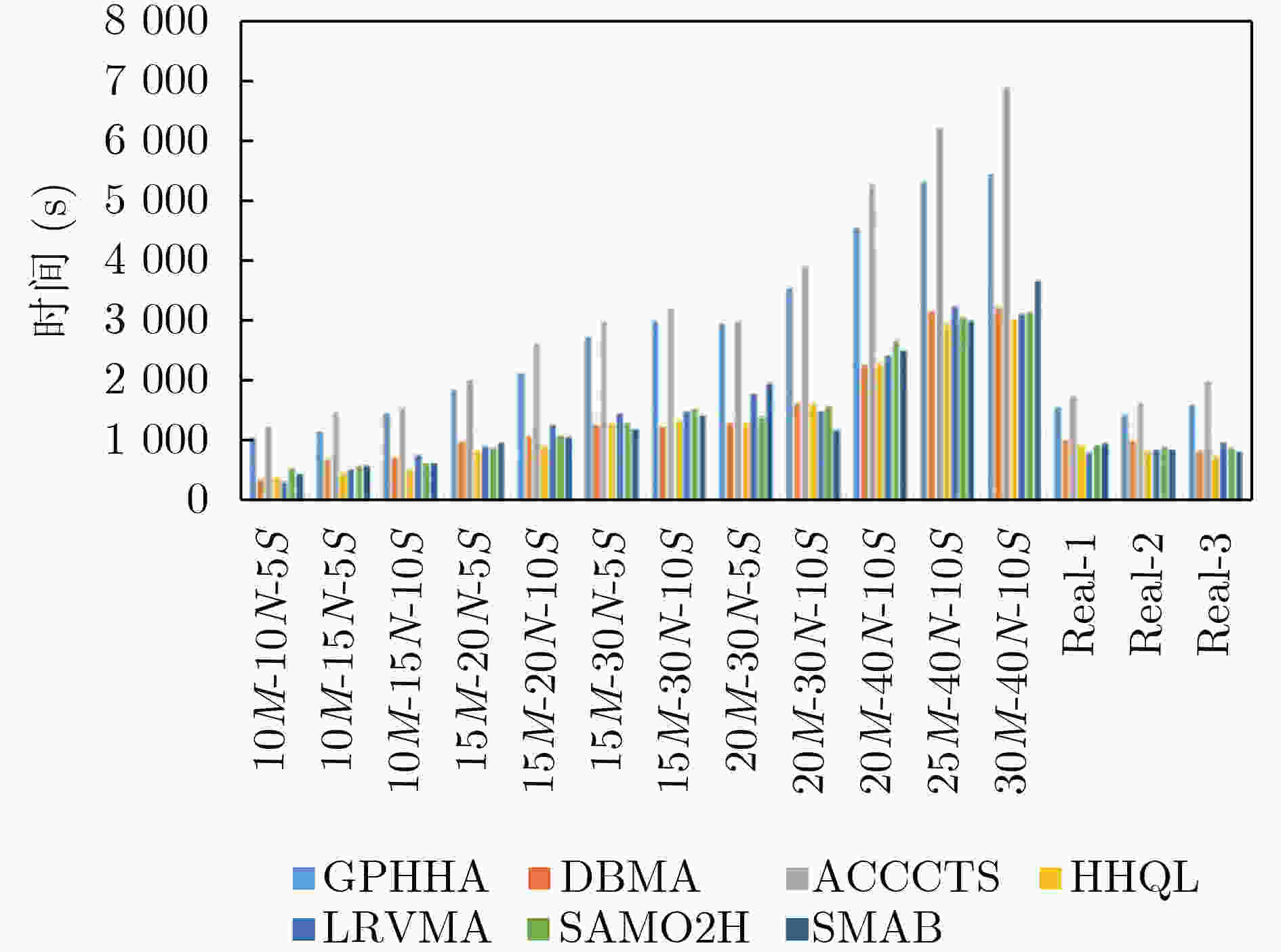 算例 PGHHA DBMA ACCCTS HHQL HVR IGD HVR IGD HVR IGD HVR IGD 10M-10N-5S 0.99258 0.09220 0.97294 +0.15199 +0.98768 =0.10607 +0.98235 +0.12064 +10M-15N-5S 0.95844 0.05834 0.82412 +0.22569 +0.88027 +0.16973 +0.84688 +0.20773 +10M-15N-10S 0.94790 0.11968 0.84145 +0.26447 +0.89963 +0.20285 +0.87447 +0.25913 +15M-20N-5S 0.98163 0.08262 0.79265 +0.36254 +0.80773 +0.23642 +0.79295 +0.33822 +15M-20N-10S 0.97927 0.11605 0.74482 +0.31588 +0.77390 +0.23932 +0.75041 +0.24309 +15M-30N-5S 0.96563 0.09172 0.72179 +0.30118 +0.76937 +0.13433 +0.71657 +0.25633 +15M-30N-10S 0.97375 0.08377 0.82710 +0.26013 +0.86548 +0.20556 +0.82900 +0.23633 +20M-30N-5S 0.99449 0.04014 0.77301 +0.23358 +0.80215 +0.17489 +0.79327 +0.18709 +20M-30N-10S 0.97315 0.17456 0.51097 +0.52757 +0.84647 +0.36461 +0.74630 +0.48835 +20M-40N-10S 0.87440 0.07848 0.73501 +0.12918 +0.80785 +0.12685 +0.79785 +0.14953 +25M-40N-10S 0.95382 0.09408 0.89869 +0.14658 +0.93671 +0.10052 =0.90224 +0.09777 =30M-40N-10S 0.94910 0.10911 0.93293 +0.16346 +0.94881 =0.11868 +0.94190 +0.14346 +Real-1 0.98426 0.10089 0.77856 +0.29865 +0.79490 +0.30287 +0.78771 +0.25761 +Real-2 0.96564 0.05132 0.87619 +0.16981 +0.90169 +0.09354 +0.85187 +0.15740 +Real-3 0.97003 0.22431 0.92007 +0.35695 +0.93587 +0.33432 +0.96637 =0.22856 ++/–/= 15/0/0 15/0/0 13/0/2 14/0/1 14/0/1 14/0/1 续表6 算例 LRVMA SMO2H SMAB HVR IGD HVR IGD HVR IGD 10M-10N-5S 0.98428 +0.10658 +0.98795 =0.11816 +0.99009 =0.11218 +10M-15N-5S 0.87415 +0.16099 +0.86120 +0.16605 +0.87402 +0.12515 +10M-15N-10S 0.87242 +0.23220 +0.86701 +0.22302 +0.85549 +0.25300 +15M-20N-5S 0.80580 +0.35287 +0.80364 +0.35751 +0.80681 +0.32411 +15M-20N-10S 0.90308 +0.15268 +0.80479 +0.25375 +0.76270 +0.19806 +15M-30N-5S 0.74572 +0.23613 +0.74964 +0.21988 +0.74641 +0.16522 +15M-30N-10S 0.82229 +0.26220 +0.85177 +0.16454 +0.85042 +0.16622 +20M-30N-5S 0.78010 +0.22599 +0.79598 +0.14746 +0.79434 +0.17365 +20M-30N-10S 0.52278 +0.45390 +0.54351 +0.40593 +0.57787 +0.39774 +20M-40N-10S 0.69624 +0.16358 +0.78799 +0.11185 +0.80452 +0.11378 +25M-40N-10S 0.90800 +0.13031 +0.92778 +0.09934 =0.92141 +0.15109 +30M-40N-10S 0.91817 +0.15803 +0.94147 +0.14479 +0.94544 =0.12199 +Real-1 0.78399 +0.28787 +0.79216 +0.29067 +0.80337 +0.25183 +Real-2 0.85814 +0.17055 +0.85469 +0.11839 +0.86265 +0.04942 =Real-3 0.95563 +0.23613 +0.94699 +0.25314 +0.92067 +0.29233 ++/–/= 15/0/0 15/0/0 14/0/1 14/0/1 13/0/2 14/0/1 -