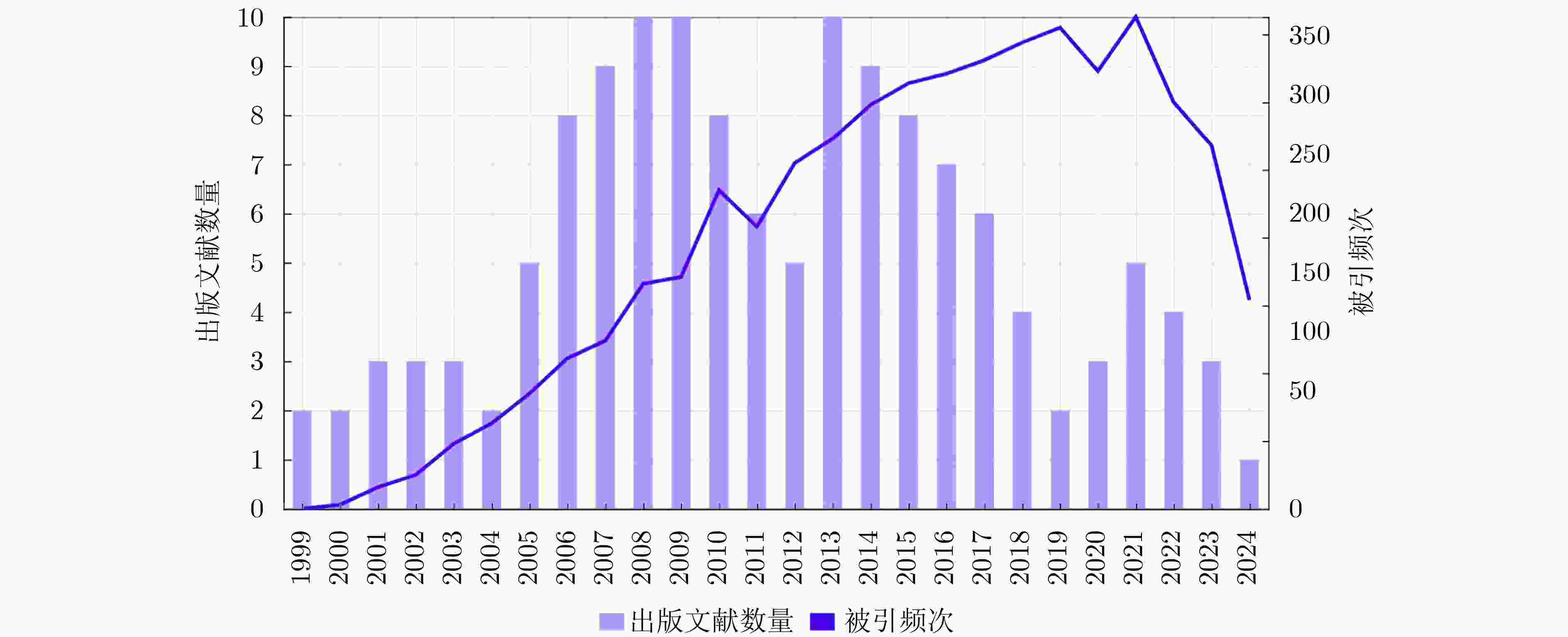 • 图  1  1999~2024 EEG-fMRI联合应用出版文献数量与被引情况