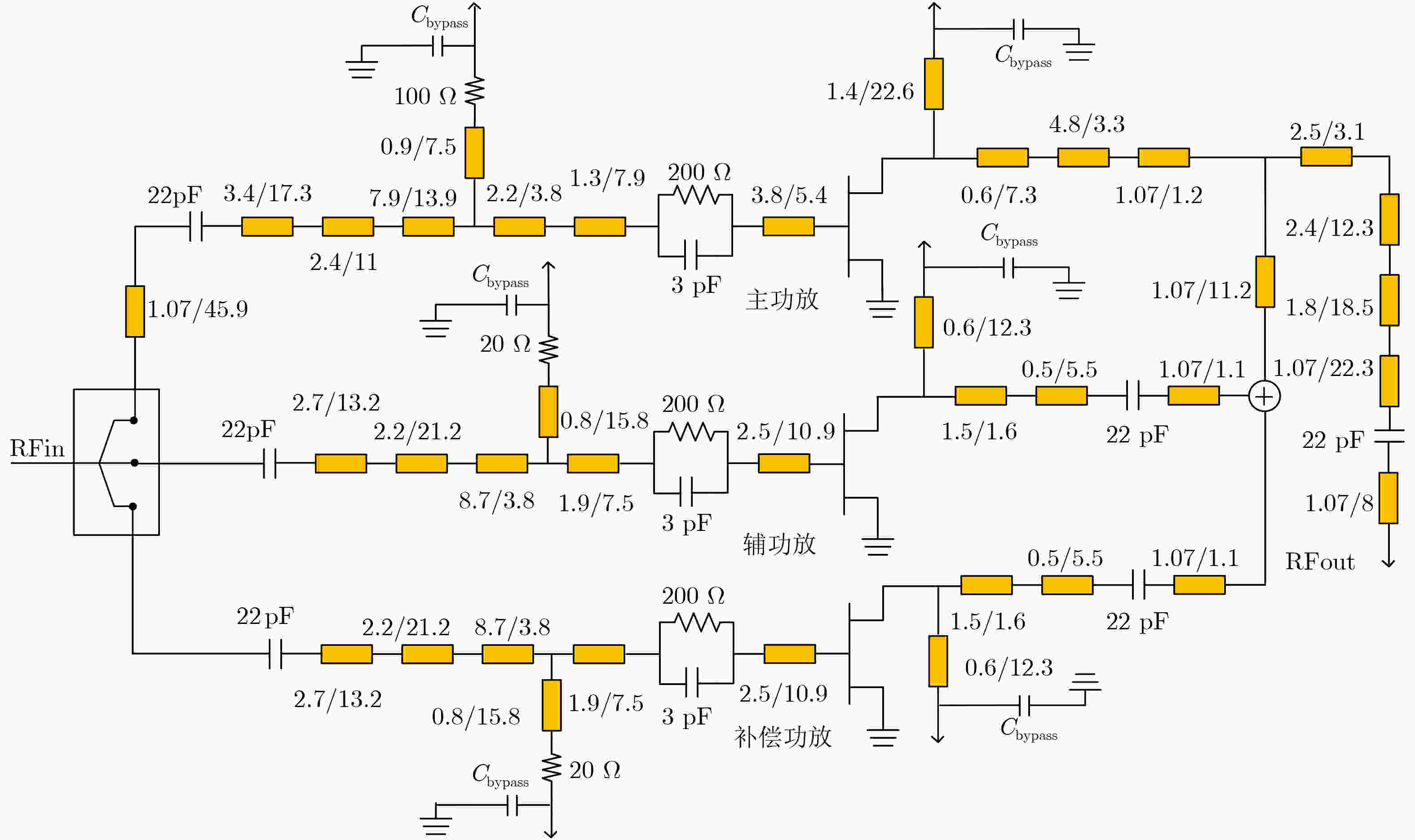 LV Guansheng, CHEN Wenhua, ZHANG Yu, et al. A highly linear GaN MMIC Doherty power amplifier based on phase mismatch induced AM–PM compensation[J]. IEEE Transactions on Microwave Theory and Techniques, 2022, 70(2): 1334–1348. doi: 10.1109/TMTT.2021.3131199.