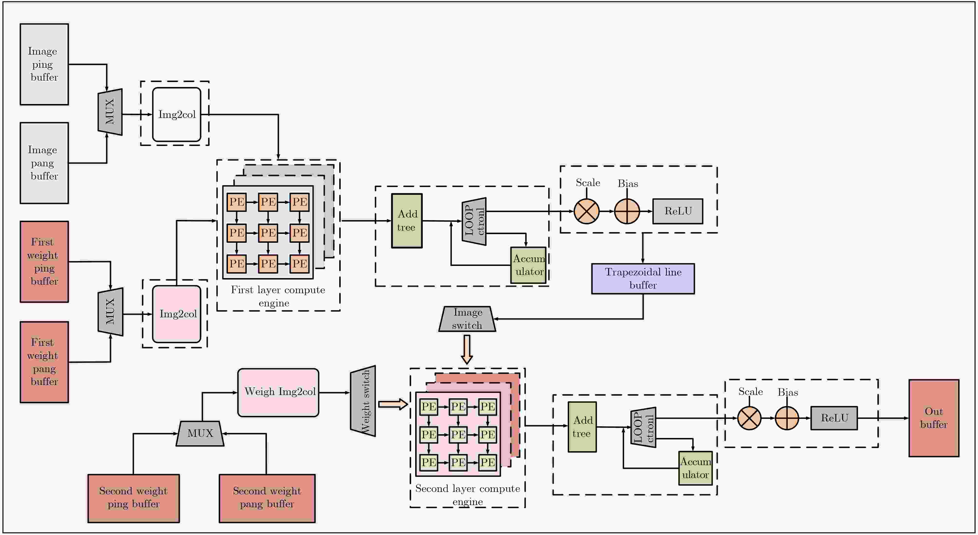 [1] SHAO Jie and CHENG Qiyu. E-FCNN for tiny facial expression recognition[J]. Applied Intelligence, 2021, 51(1): 549–559. doi: 10.1007/s10489-020-01855-5. [2] KRIZHEVSKY A, SUTSKEVER I, and HINTON G E. ImageNet classification with deep convolutional neural networks[C]. Proceedings of the 26th Annual Conference on Neural Information Processing Systems, Lake Tahoe, USA, 2012: 1106–1114. [3] SIMONYAN K and ZISSERMAN A. Very deep convolutional networks for large-scale image recognition[C]. 3rd International Conference on Learning Representations, San Diego, USA, 2015: 236–238. (查阅网上资料, 未找到本条文献页码, 请确认). [4] HE Kaiming, ZHANG Xiangyu, REN Shaoqing, et al. Identity mappings in deep residual networks[C]. 14th European Conference on Computer Vision, Amsterdam, The Netherlands, 2016: 630–645. doi: 10.1007/978-3-319-46493-0_38. [5] IOFFE S and SZEGEDY C. Batch normalization: Accelerating deep network training by reducing internal covariate shift[C]. Proceedings of the 32nd International Conference on Machine Learning, Lille, France, 2015: 448–456. [6] BAO Chun, XIE Tao, FENG Wenbin, et al. A power-efficient optimizing framework FPGA accelerator based on Winograd for YOLO[J]. IEEE Access, 2020, 8: 94307–94317. doi: 10.1109/ACCESS.2020.2995330. [7] YE Jinlin, LIU Yuhan, CHEN Haiyong, et al. Edge computing accelerator for real-time defect detection of photovoltaic panel on lightweight FPGAs[J]. IEEE Transactions on Instrumentation and Measurement, 2025, 74: 3001815. doi: 10.1109/TIM.2025.3563001. [8] ZHANG Chen, WANG Xin’an, YONG Shanshan, et al. An energy-efficient convolutional neural network processor architecture based on a systolic array[J]. Applied Sciences, 2022, 12(24): 12633. doi: 10.3390/app122412633. [9] XU Yuhua, LUO Jie, and SUN Wei. Flare: An FPGA-based full precision low power CNN accelerator with reconfigurable structure[J]. Sensors, 2024, 24(7): 2239. doi: 10.3390/s24072239. [10] ZHANG Yonghua, WANG Haojie, and PAN Zhenhua. An efficient CNN accelerator for pattern-compressed sparse neural networks on FPGA[J]. Neurocomputing, 2025, 611: 128700. doi: 10.1016/j.neucom.2024.128700. [11] HU Xianghong, FU Shansen, LIN Yuanmiao, et al. An FPGA-based bit-level weight sparsity and mixed-bit accelerator for neural networks[J]. Journal of Systems Architecture, 2025, 166: 103463. doi: 10.1016/j.sysarc.2025.103463. [12] LI Gang, LIU Zejian, LI Fanrong, et al. Block convolution: Toward memory-efficient inference of large-scale CNNs on FPGA[J]. IEEE Transactions on Computer-Aided Design of Integrated Circuits and Systems, 2022, 41(5): 1436–1447. doi: 10.1109/TCAD.2021.3082868. [13] PACINI T, RAPUANO E, DINELLI G, et al. A multi-cache system for on-chip memory optimization in FPGA-based CNN accelerators[J]. Electronics, 2021, 10(20): 2514. doi: 10.3390/electronics10202514. [14] OU Yaozhong, YU Weihan, UN K F, et al. A 119.64 GOPs/W FPGA-based ResNet50 mixed-precision accelerator using the dynamic DSP packing[J]. IEEE Transactions on Circuits and Systems II: Express Briefs, 2024, 71(5): 2554–2558. doi: 10.1109/TCSII.2024.3377356. [15] FUKUSHIMA Y, IIZUKA K, and AMANO H. Parallel implementation of CNN on multi-FPGA cluster[J]. IEICE Transactions on Information and Systems, 2023, E106. D(7): 1198–1208. doi: 10.1587/transinf.2022EDP7175. [16] ALWANI M, CHEN Han, FERDMAN M, et al. Fused-layer CNN accelerators[C]. 2016 49th Annual IEEE/ACM International Symposium on Microarchitecture (MICRO), Taipei, China, 2016: 1–12. doi: 10.1109/MICRO.2016.7783725. [17] 陈云霁, 李玲, 赵永威, 等. 智能计算系统: 从深度学习到大模型[M]. 2版. 北京: 机械工业出版社, 2024: 256–257.CHEN Yunji, LI Ling, ZHAO Yongwei, et al. AI Computing Systems[M]. 2nd ed. Beijing: China Machine Press, 2024: 256–257. [18] LIU Yanyi, DU Hang, WU Yin, et al. FPGA accelerated deep learning for industrial and engineering applications: Optimal design under resource constraints[J]. Electronics, 2025, 14(4): 703. doi: 10.3390/electronics14040703. -