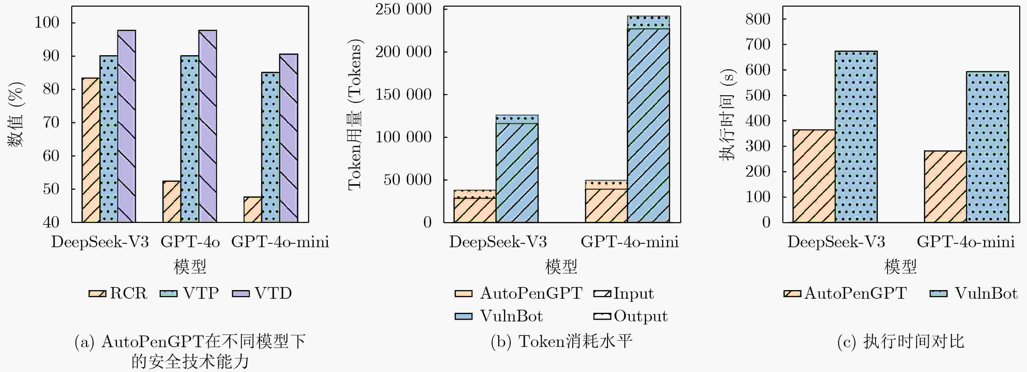 模型 方法 整体性能 VTP VTD RCR DeepSeek-V3 Variant-1 75.00 76.19 71.43 Variant-2 90.00 92.86 64.29 Variant-3 80.00 83.33 66.67 AutoPenGPT 90.00 97.62 80.95 GPT-4o-mini Variant-1 50.00 59.52 42.86 Variant-2 70.00 83.33 38.10 Variant-3 60.00 78.57 40.48 AutoPenGPT 85.00 90.48 47.62 表 3 平台脆弱性探测-已知漏洞的测试与利用(%)