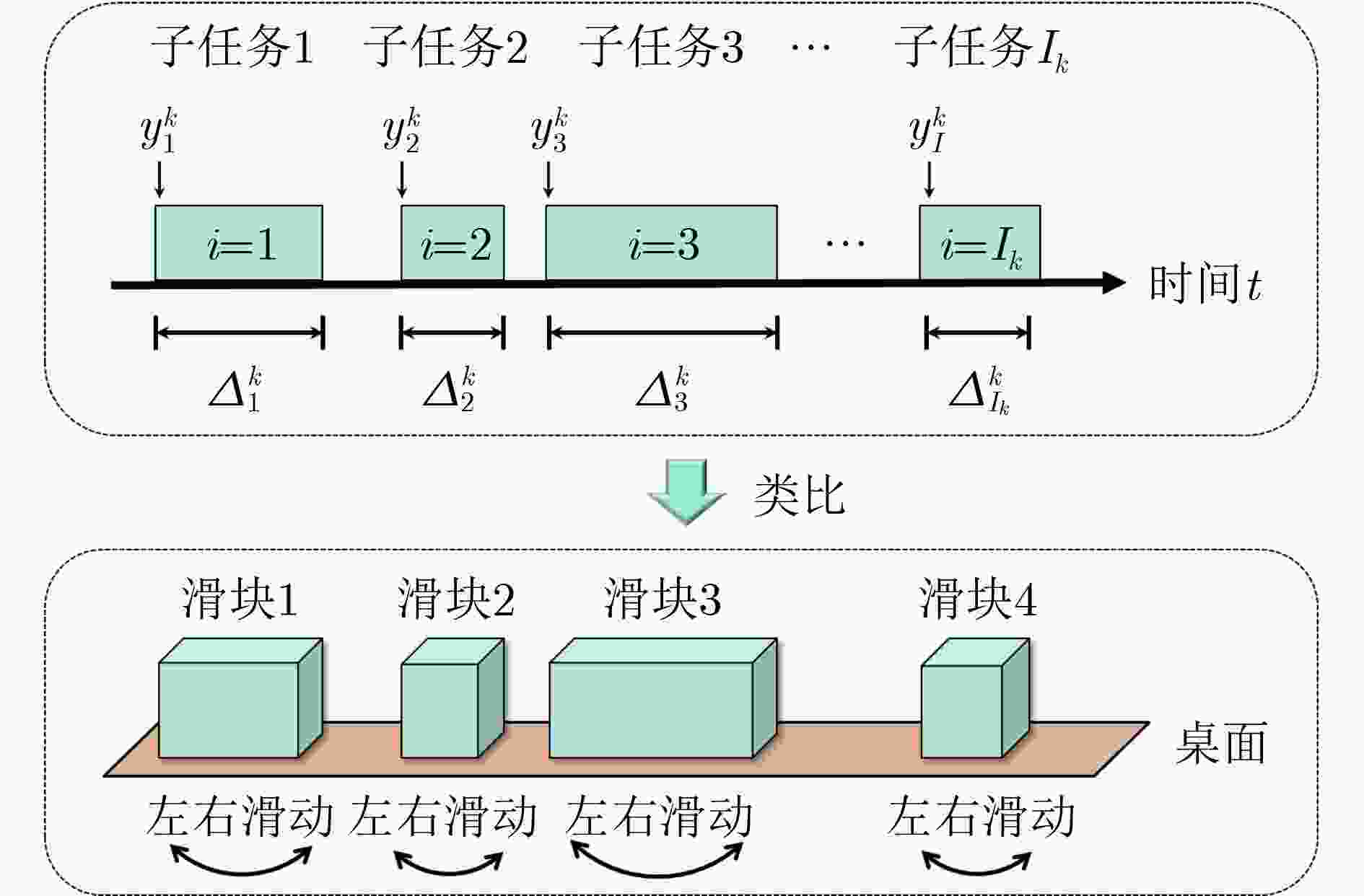 输入:任务信息集$ \{\mathcal{K},{\left\{{\mathcal{I}}_{k}\right\}}_{k\in \mathcal{K}},{\left\{{{\varDelta }}^{k}\right\}}_{k\in \mathcal{K}},\left\{\mathcal{G}_{i}^{k}{\}}_{k\in \mathcal{K},i\in {{\mathcal{I}}_{k}}}\right\} $以