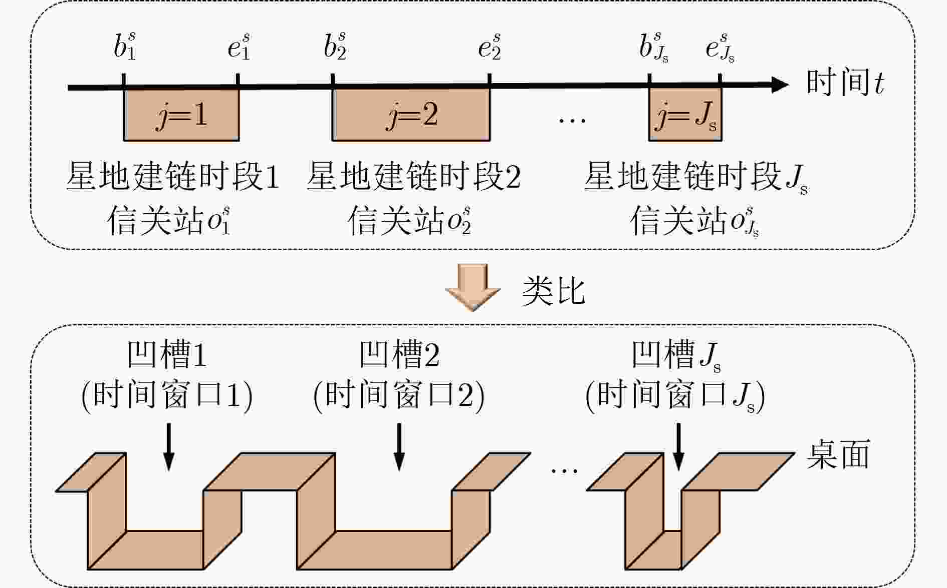 $ {{\mathrm{C}}}{1},{\mathrm{C}}{2}^{'},{{\mathrm{C}}}{3},{\mathrm{C}}{4}^{'},{\mathrm{C}}{5}^{'},{{\mathrm{C}}}{5}{\text{~}}{{\mathrm{C}}}{11} $的可行解。7: if 找到可行解$ {{\mathrm{Sol}}}_{s} $ then 8: return $ {K}_{s} $和$ {{\mathrm{Sol}}}_{s} $ 9: else 10: $ {K}_{s}\leftarrow {K}_{s}-1 $ 11: end if 12: end while 13: if $ {K}_{s}=0 $ then 14: return $ {K}_{s}=0 $和$ {{\rm{Sol}}}_{s}=\text{Null} $ 15: end if 16: end for 17: return $ {\boldsymbol{K}}^{\rm{r}\rm{e}\rm{s}\rm{u}\rm{l}\rm{t}} $, $ {\bf{S}\bf{o}\bf{l}}^{\rm{r}\rm{e}\rm{s}\rm{u}\rm{l}\rm{t}} $ 表 1 星地链路弧段信息样例
