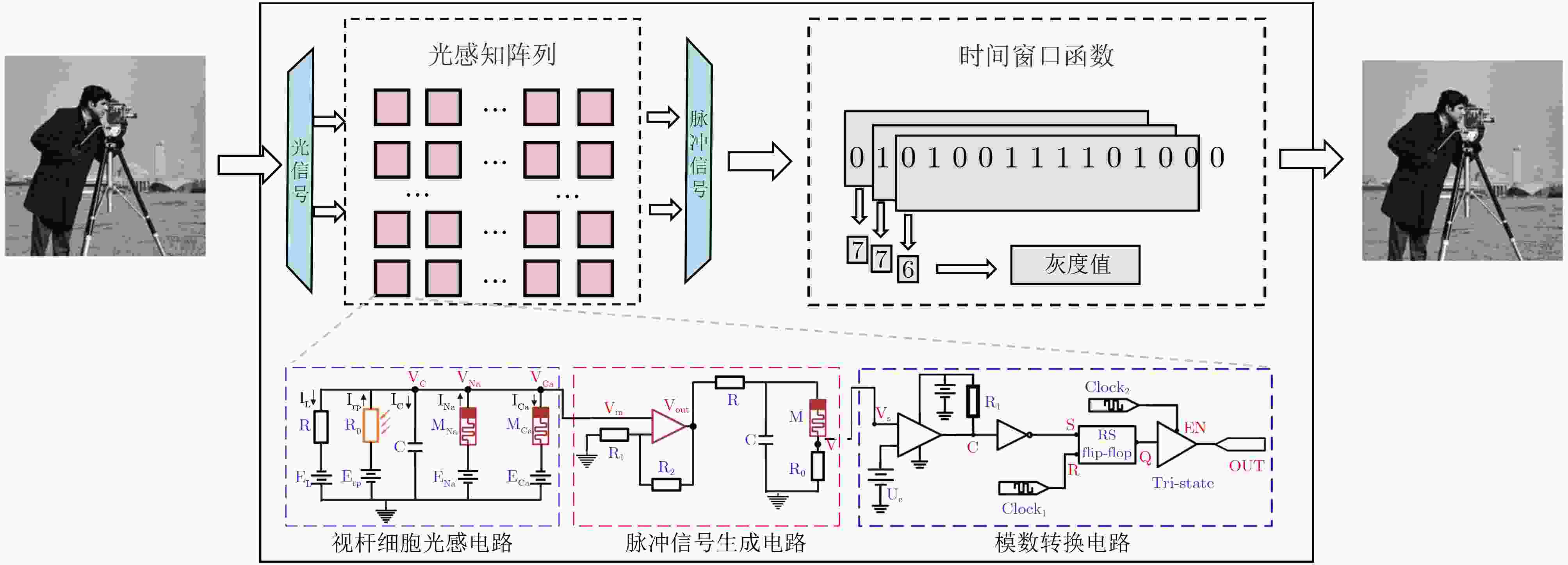 摘要: 人类视觉系统通过多层神经元相互配合,实现了具备自适应性、灵敏度高、响应速度快的光感知功能。本文通过研究人类视觉系统中感光细胞的工作原理,提出了一种基于忆阻器的视杆细胞光感电路,并应用于脉冲相机。首先,通过总结视杆细胞感光过程中离子变化机制提出了视杆细胞数学模型。其次,提出两种忆阻器模型以模拟感光细胞中钠离子和钙离子通道的特性。之后,构建了视杆细胞光感电路,实现光电转换,电路具备自适应性,同时具有速度高、功耗低、动态范围广等优势。最后将视杆细胞光感电路应用于脉冲相机,电路仿真结果表明,与采用简化神经元光感电路和传统CMOS方案的脉冲相机相比,基于视杆细胞光感电路的脉冲相机转换速度提升了20%和150%,系统功耗相比于传统CMOS电路降低了30%。