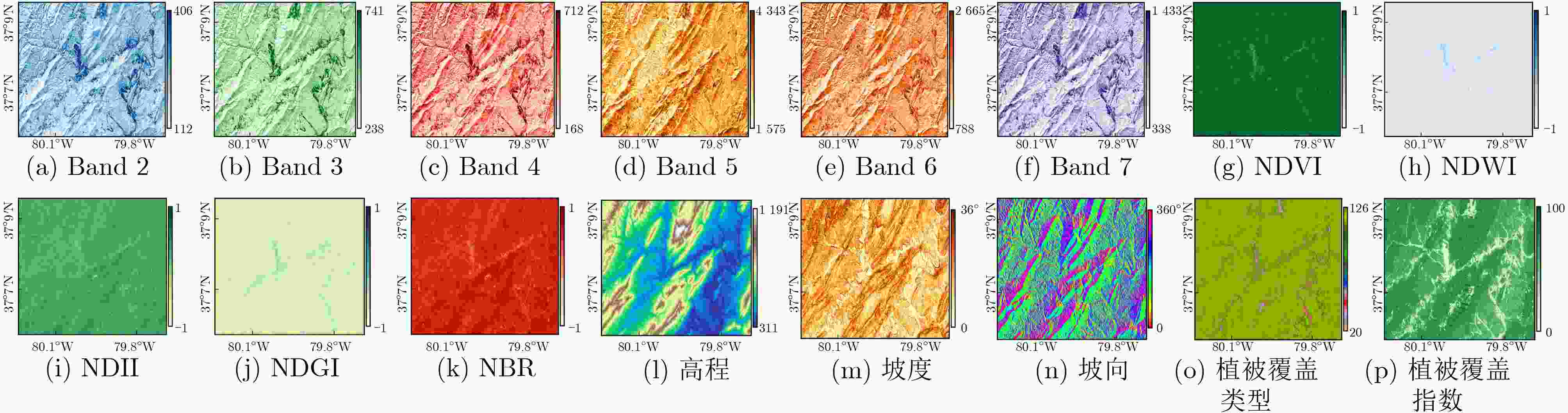 冠层高度Landsat 8 光谱波段 Band 2,Band 3,Band 4,Band 5,Band 6,Band 7 归一化指数 NDVI, NDWI, NDII, NDGI, NBR AW3D30 地形结构 高程,坡度,和坡向 CGLS-LC100 植被类型 植被覆盖类型 GFCC30TC 植被指数 植被覆盖指数 表 4 Landsat-8光谱波段基本信息