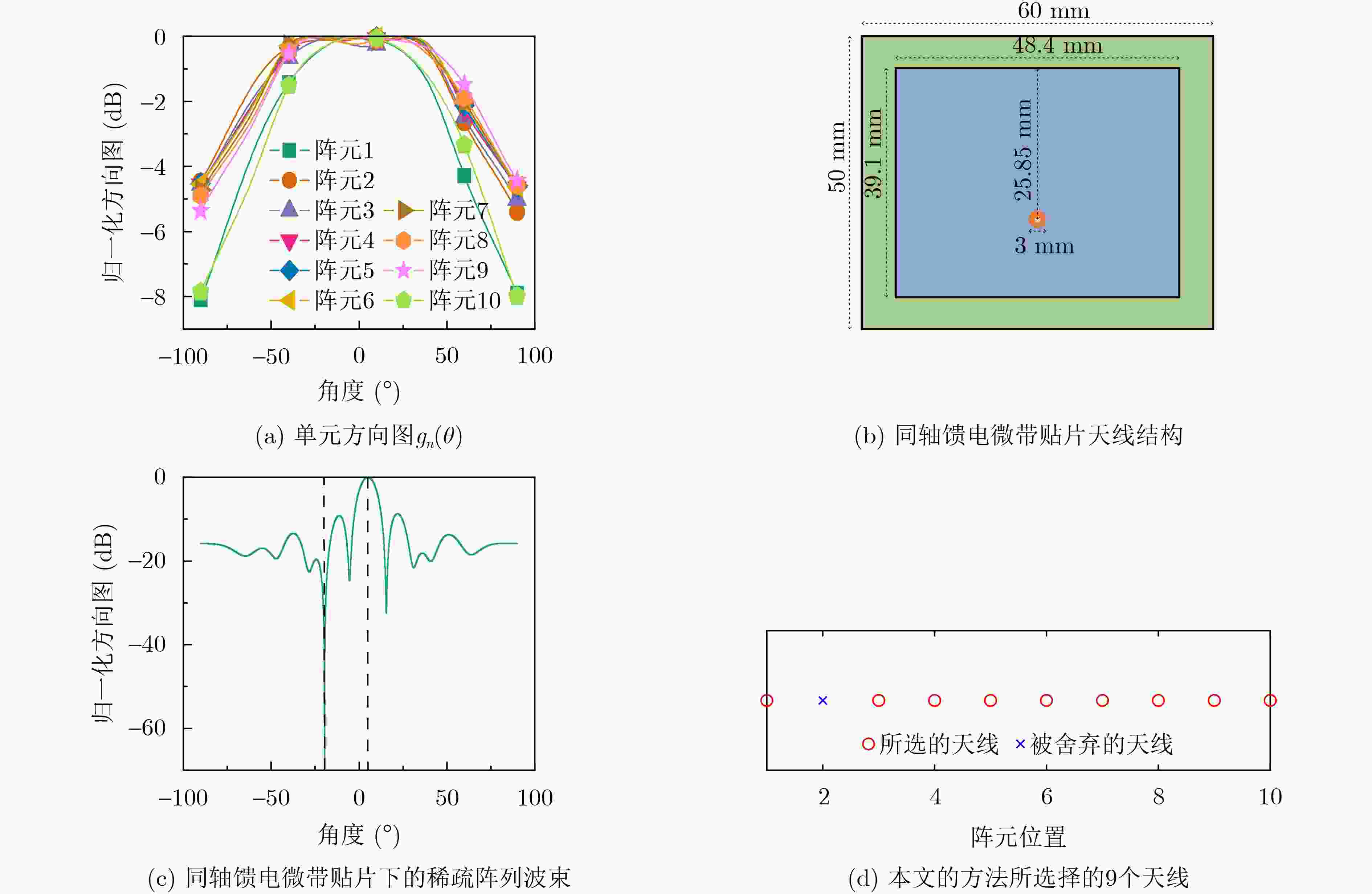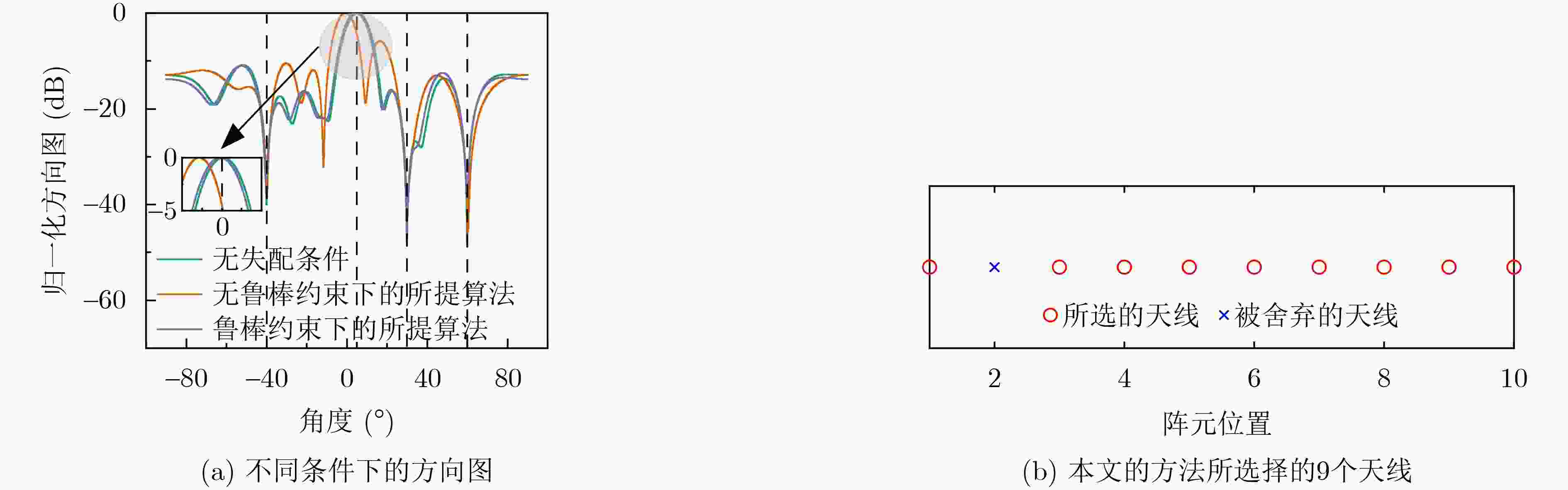 摘要: 波束形成技术在阵列信号处理,尤其是在波达方向估计方面发挥着关键作用。尽管传统的鲁棒波束形成方法能够处理导向矢量失配的问题,但它们未能充分利用阵列稀疏化带来的硬件优势,并且在存在干扰源时,难以有效抑制副瓣。因此,该文提出一种能够协同优化鲁棒性、波束性能、副瓣电平与阵列稀疏性的统一框架。通过将l0范数作为稀疏约束、引入导向矢量误差以增强鲁棒性,并联合副瓣抑制约束,构建了一个全面的凸优化问题。特别地,该文在建模时进一步考虑了实际天线间的互耦效应,通过引入包含互耦参数的精确导向矢量模型,显著提升了算法在实际天线阵列中的适用性。仿真结果表明,在信噪比为5 dB、存在单个干扰源的条件下,所提算法能实现低于–40 dB的干扰抑制深度,并将峰值旁瓣电平稳定在–24.5 dB以下,同时减少10%的激活阵元。在与现有方法的定量对比中,该算法在信噪比为5 dB场景下的输出信干噪比相较于最小方差无失真响应方法提升11.37 dB。实验结果证明该框架能够在导向矢量失配及低信噪比等非理想条件下,以较少的阵元实现较高的输出信干噪比和较强的干扰抑制能力,对导向矢量误差与阵元间的相互耦合均表现出良好的鲁棒性。Abstract: