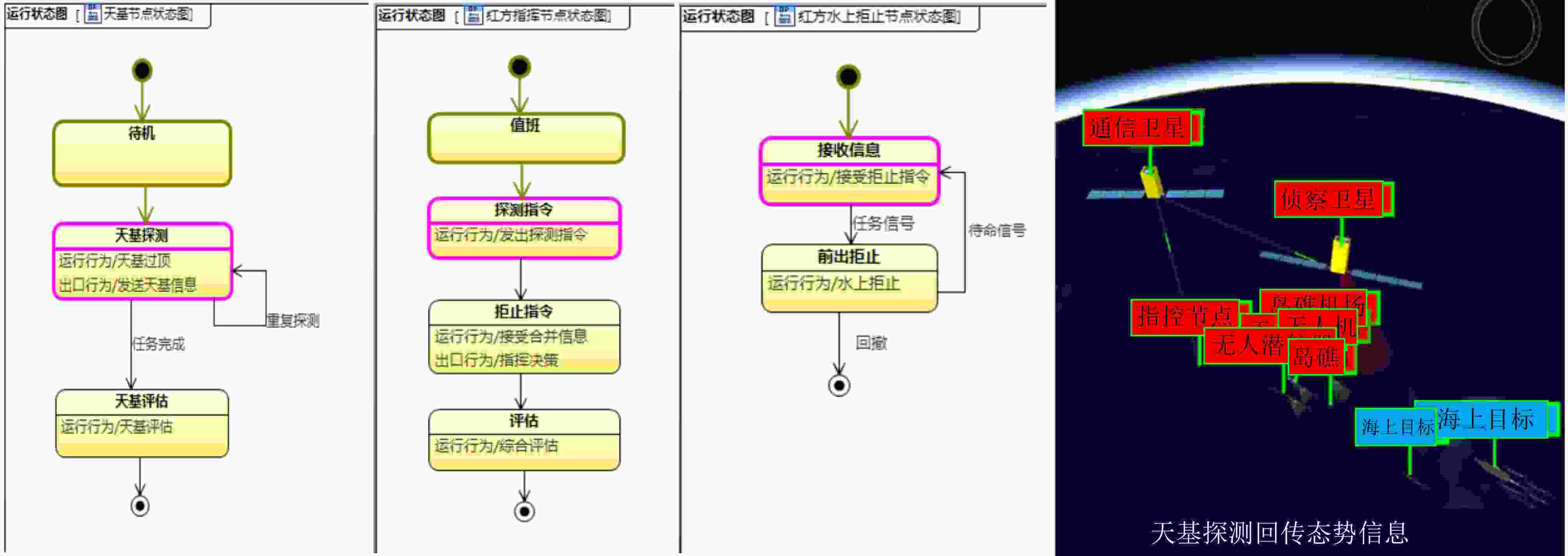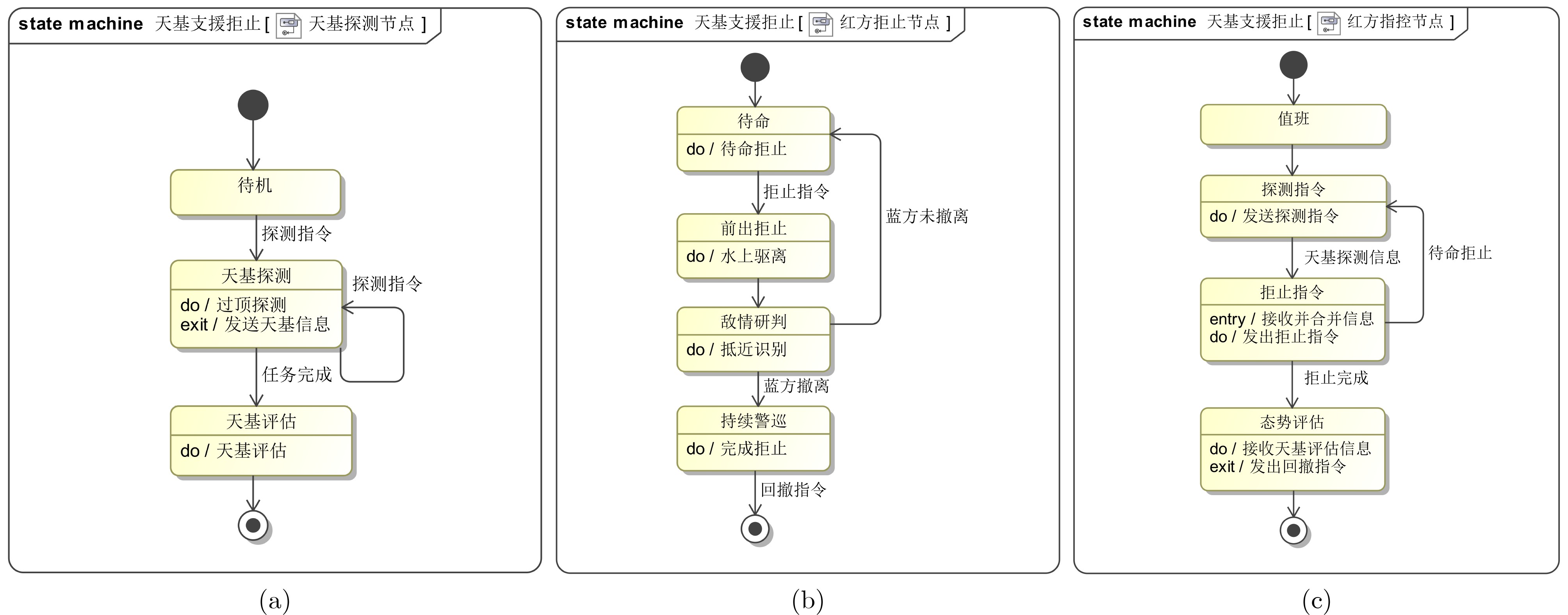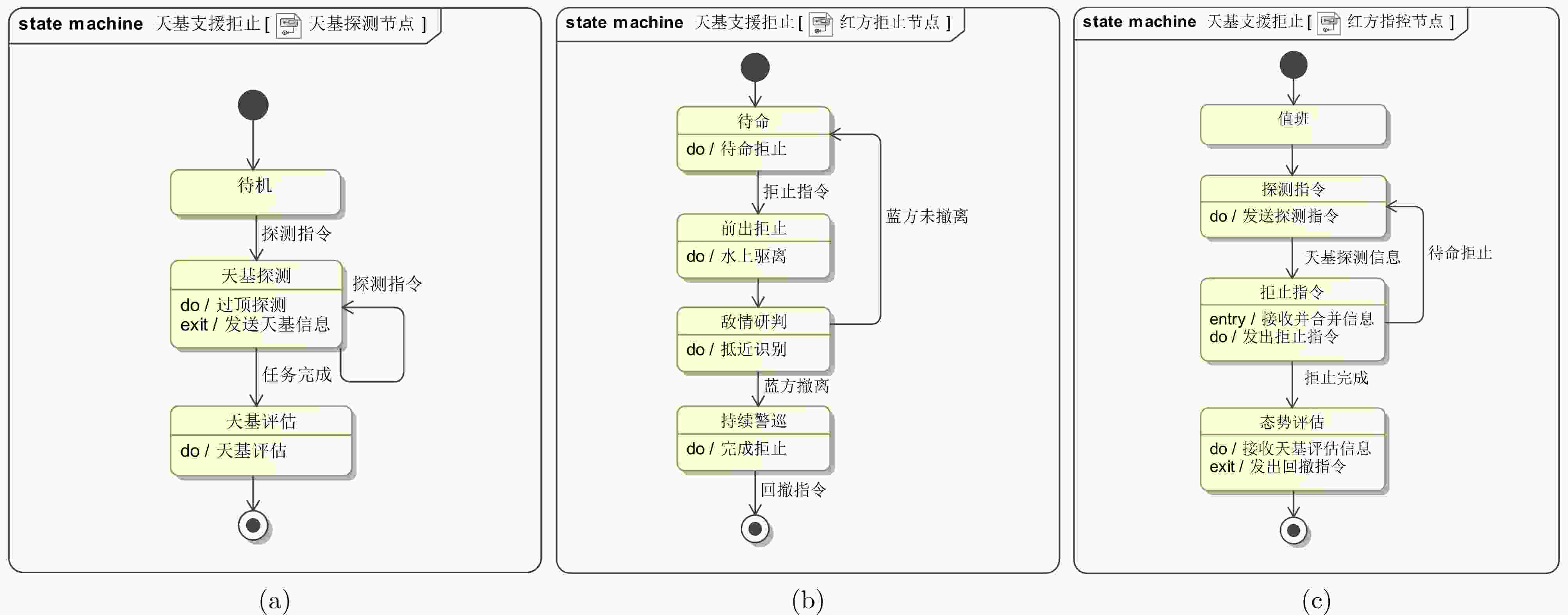 图  6  (a)天基探测节点状态机 (b)拒止节点状态机 (c)指控节点状态机