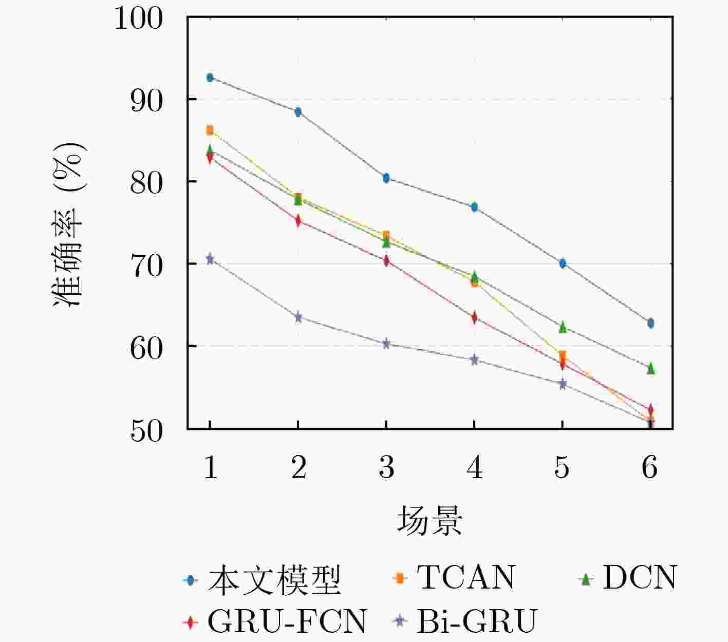 类别 本文模型 TCAN DCN GRU-FCN Bi-GRU 固定 90.47 87.77 86.33 79.56 78.67 抖动 85.11 85.22 82.40 77.22 72.37 参差 88.68 81.62 84.51 79.48 66.79 组变 85.46 81.90 78.37 72.79 57.78 表 6 模型计算开销对比