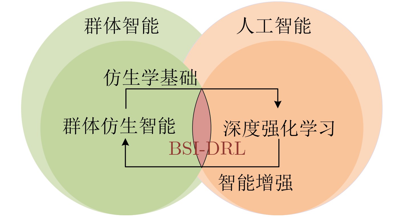 Significance Unmanned Aerial Vehicle (UAV) swarm technology is a core driver of low-altitude economic development and intelligent unmanned system evolution, yielding cooperative effects greater than the sum of individual UAVs in disaster response, environmental monitoring, and logistics distribution. As mission scenarios shift toward dynamic heterogeneity, strong interference, and large-scale deployment, traditional centralized control architectures, although theoretically feasible, do not achieve practical implementation and remain a major constraint on engineering application. Bionic Swarm Intelligence (BSI), a distributed intelligent paradigm that simulates the self-organization, elastic reconfiguration, and cooperative behavior of biological swarms, offers a path to overcoming these limitations. The integration of Deep Reinforcement Learning (DRL) enables a transition from static behavior simulation to adaptive autonomous learning and decision-making. The combined BSI-DRL framework allows UAV swarms to optimize cooperative strategies through data-driven interaction, addressing the limited adaptability of manually designed bionic rules. Clarifying the progress and challenges of UAV swarm modeling based on BSI-DRL is essential for supporting engineering transformation and improving practical system performance. Progress The progress of BSI-DRL-driven UAV swarm behavior modeling is summarized from four aspects.(1) BSI’s concept and core characteristics: BSI, a biology-oriented subset of Swarm Intelligence (SI), is defined by four characteristics: distributed control without dependence on a central command, self-organization through spontaneous disorder-to-order transition, robustness through functional maintenance under disturbances, and adaptability through dynamic strategy optimization in complex environments. (2) Three-stage paradigm transition of BSI: (a)Before 2010 (rule transplantation stage): work centered on applying fixed bionic algorithms such as particle swarm optimization and biological models (e.g., Boids, Vicsek) to UAV path planning, with SI dependent on preset rules ( Fig. 2 ). (b)From 2010 to 2020 (systematic decentralized control stage): studies shifted toward systematic design and decentralized control theory, enabling a transition from simulation to physical verification but showing limited adaptability under dynamic conditions (Fig. 2 ). (c)Since 2020 (AI-enhanced autonomous learning stage): integration of DRL enabled a transition to autonomous learning and decision-making, allowing UAV swarms to develop advanced cooperative strategies when facing unknown environments (Fig. 2 ).(3) Typical biological swarm mechanisms and bionic mapping: Four representative biological mechanisms provide bionic prototypes. (a)Pigeon flock hierarchy, characterized by a three-tier coupled structure, supports formation control and cooperation under interference. (b)Wolf pack hunting, structured as four-stage dynamic collaboration, enables efficient task division. (c)Fish school self-repair through decentralized topology adjustment enhances swarm robustness. (d)Honeybee colony division of labor, based on decentralized decision-making and dynamic role assignment, improves task efficiency. Bionic mapping proceeds through three steps: decomposition of the biological prototype and extraction of behavioral features using dynamic mode decomposition, social interaction filtering, and group state classification (Fig. 5 ); abstraction of behavior rules and mathematical modeling using approaches such as differential equations and graph theory; and algorithmic adaptation and intelligent enhancement by converting mathematical models into executable rules and integrating DRL.(4) Core BSI-DRL modeling directions: Three main technical paths are summarized with horizontal comparison (Table 1 ). (a)Bionic-rule parameterization with DRL optimization (shallow fusion): DRL is used to optimize key parameters of bionic models, such as attraction-repulsion weights in Boids, preserving biological robustness but exhibiting instability during large-swarm training. (b)Generative bionic-rule multi-agent reinforcement learning (middle fusion): bio-inspired reward functions guide the autonomous emergence of cooperative rules, improving adaptability but reducing interpretability due to “black-box” characteristics. (c)Dynamic role assignment with hierarchical DRL (deep fusion): a three-tier architecture comprising global planning, group role assignment, and individual execution reduces decision-making complexity in heterogeneous swarms and strengthens multi-task adaptability, although multi-level coordination remains challenging. A scenario-adaptation logic based on swarm scale, environmental dynamics, and task heterogeneity, together with a multi-method fusion strategy, is also proposed.Conclusions This study clarifies the theoretical framework and research progress of BSI-DRL-based UAV swarm behavior modeling. BSI addresses limitations of traditional centralized control, including scale expandability, dynamic adaptability, and system credibility, by simulating biological swarm mechanisms. DRL further enables a shift toward autonomous learning. Horizontal comparison indicates complementary strengths across the three core directions: parameterization optimization maintains basic robustness, generative methods enhance dynamic adaptability, and hierarchical collaboration improves performance in heterogeneous multi-task settings. The proposed scenario-adaptation logic, which applies parameterization to small-to-medium and static scenarios, generative methods to medium-to-large and dynamic scenarios, and hierarchical collaboration to heterogeneous multi-task missions, together with the multi-method fusion strategy, offers feasible engineering pathways. Key engineering bottlenecks are also identified, including inconsistent environmental perception, unbalanced multi-objective decision-making, and limited system interpr