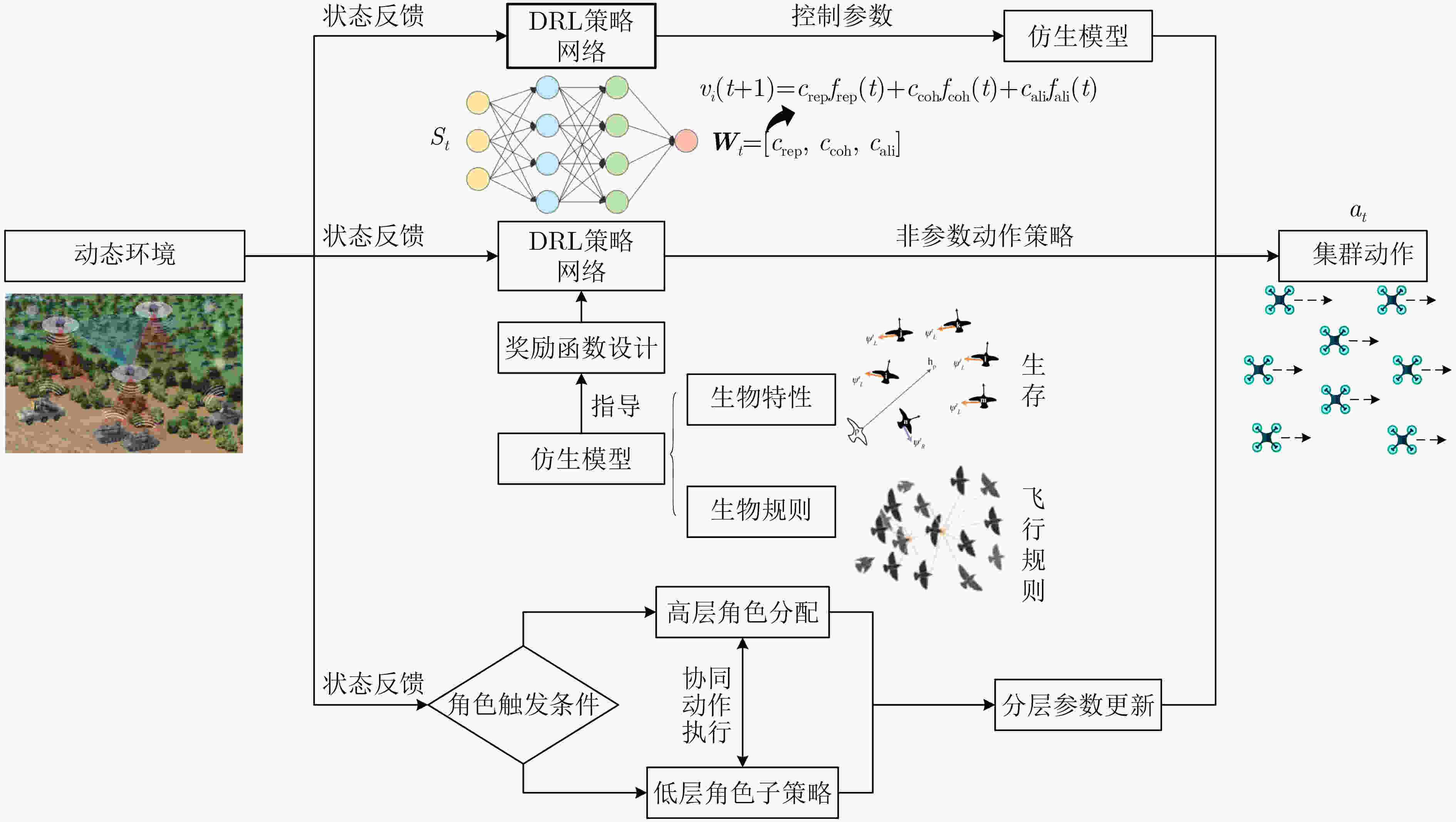仿生规则参数化优化 仿生规则生成式MADRL 动态角色分配与分层协同 Q-learning优化