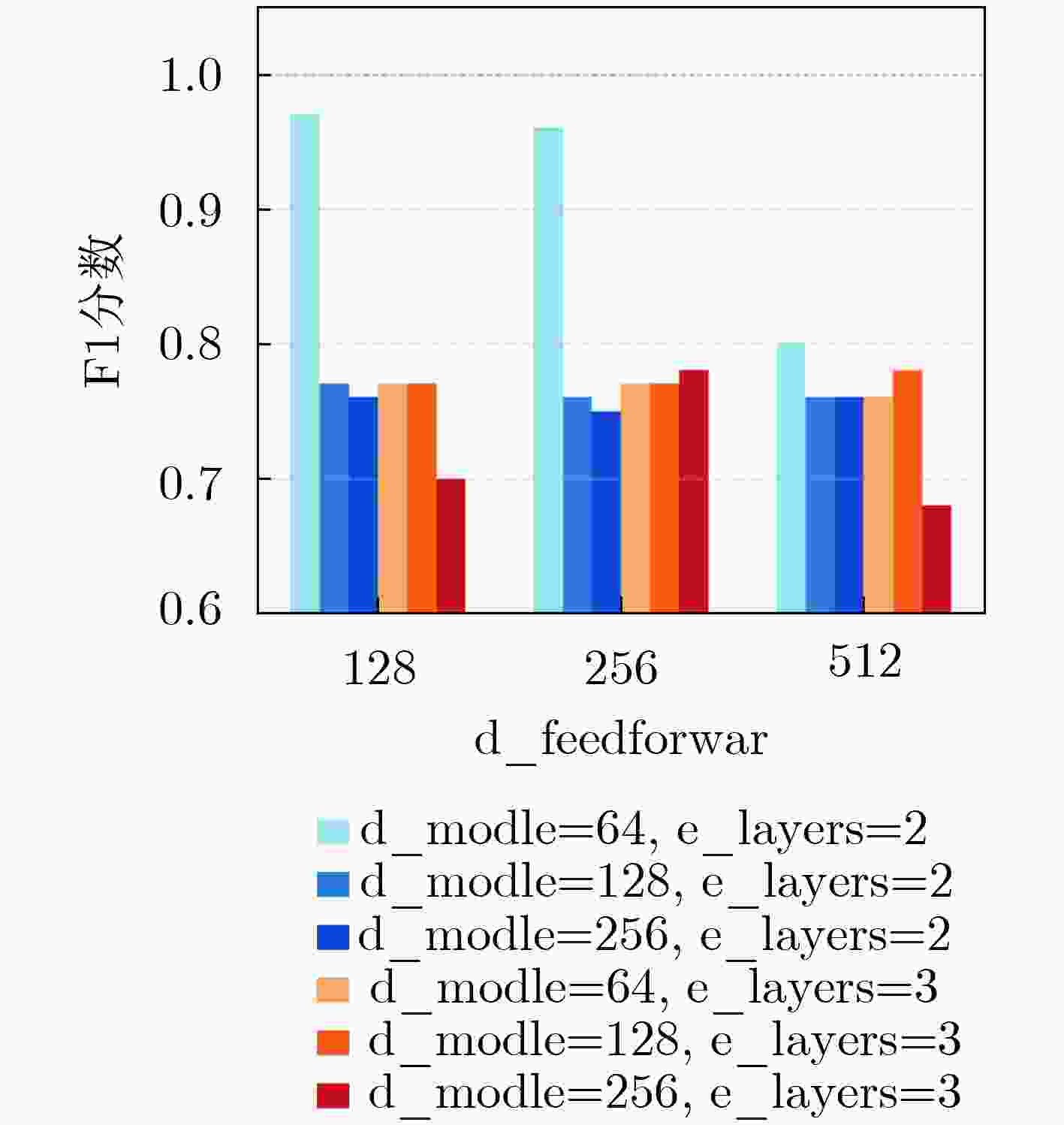 超参数 值 滑动窗长度 300 Batch_size大小 64 Epoch大小 20 d_model 64 d_feedforward 128 e_layers 2 学习率 0.001 优化器 Adam 表 5 对比方法模型超参数设置