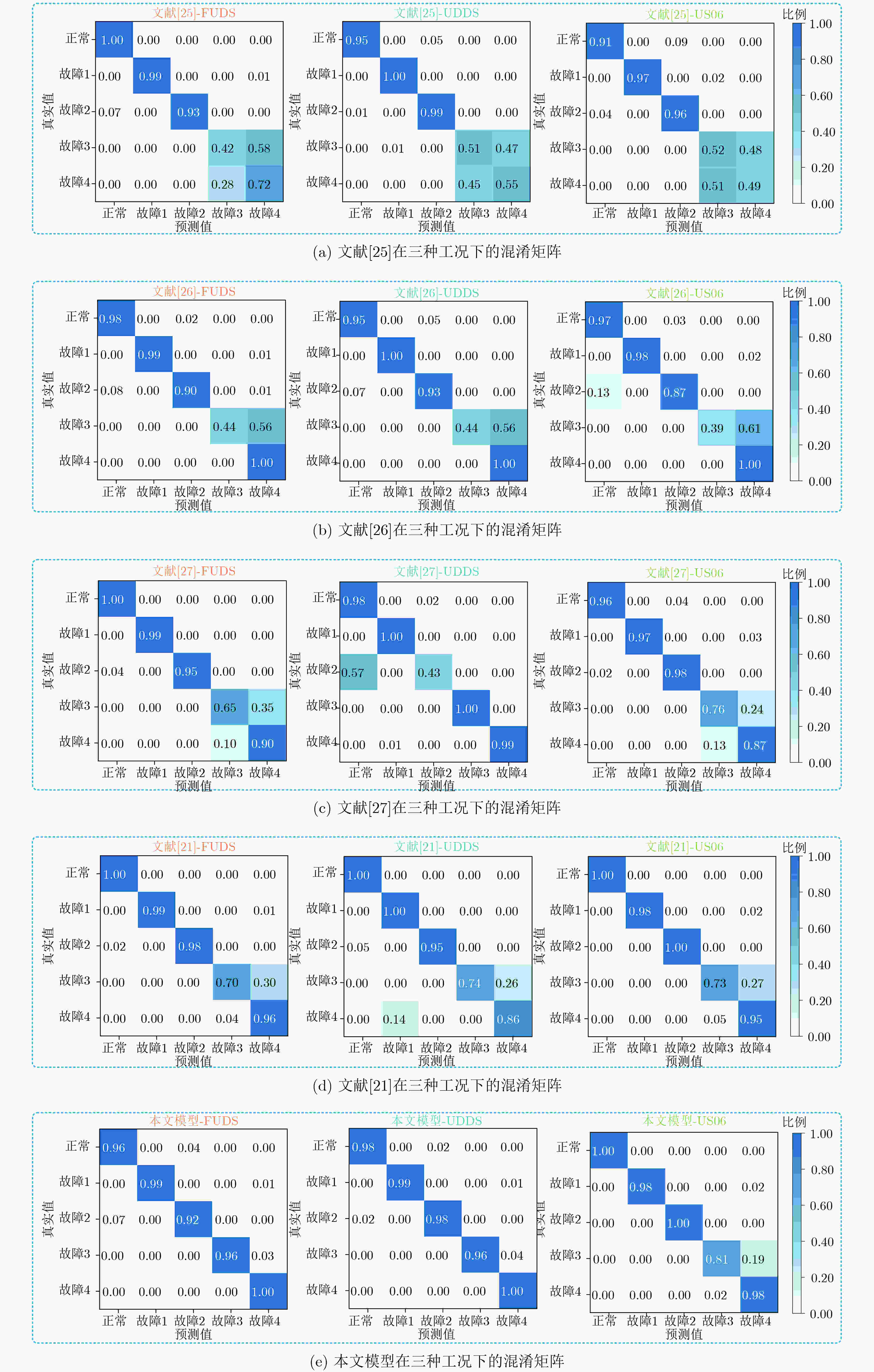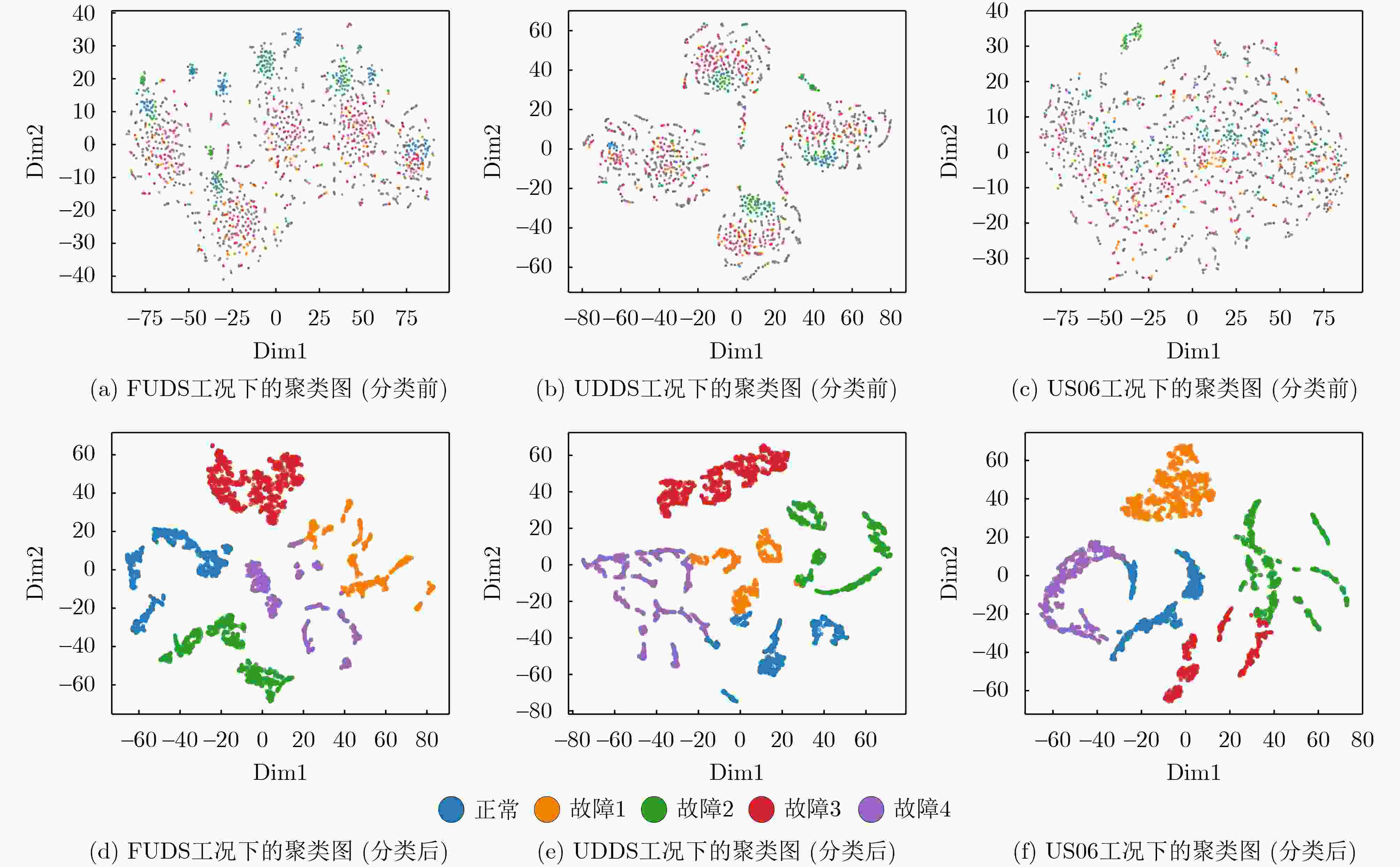 模型 FUDS UDDS US06 精确率 召回率 F1分数 准确率 精确率 召回率 F1分数 准确率 精确率 召回率 F1分数 准确率 文献[21] 92.672 92.422 91.672 91.412 91.223 90.133 90.062 90.123 93.412 93.482 92.862 92.452 文献[25] 79.63 78.88 78.40 78.87 79.53 79.90 77.37 77.75 75.42 75.05 75.18 75.03 文献[26] 90.083 84.89 83.86 84.89 89.76 85.17 84.07 85.05 89.01 83.44 82.10 83.44 文献[27] 89.77 90.983 89.423 88.713 93.162 90.402 89.613 90.402 90.693 93.103 91.503 90.323 本文模型 97.471 97.461 97.441 97.451 98.151 98.081 98.101 98.071 95.561 95.311 95.061 94.891 注:上标1,2,3分别代表第1、第2和第3。 表 7 不同工况下的消融实验(%)