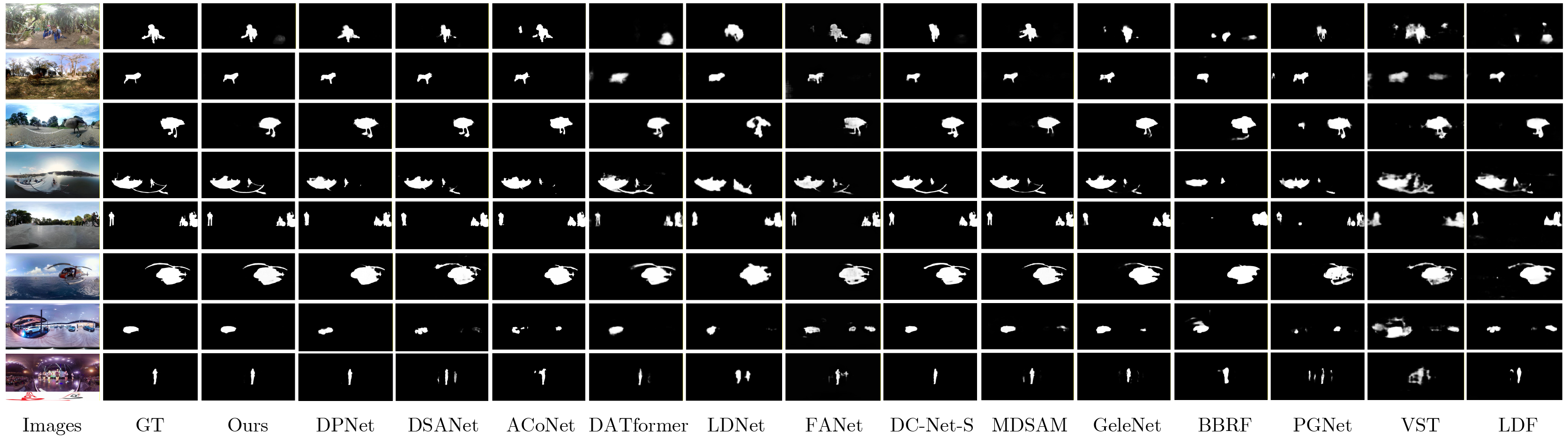 SODLDF[4] 0.0234 0.7052 0.6892 0.8659 0.8557 0.8557 0.0315 0.6105 0.5942 0.8464 0.8222 0.7376 VST[5] 0.0260 0.6941 0.6332 0.8897 0.8361 0.7808 0.0343 0.5975 0.5282 0.8497 0.7681 0.7453 PGNet[8] 0.0254 0.7221 0.7144 0.8700 0.8440 0.8048 0.0316 0.5969 0.5519 0.8318 0.7404 0.6993 BBRF[9] 0.0258 0.6571 0.6532 0.8545 0.8510 0.7563 0.0430 0.5155 0.5014 0.8043 0.7991 0.6679 CeleNet[6] 0.0230 0.7399 0.7280 0.8914 0.8859 0.8095 0.0291 0.6587 0.6513 0.8632 0.8487 0.7592 MDSAM[2] 0.0163 0.8440 0.8009 0.9329 0.9214 0.8721 0.0266 0.6912 0.6650 0.8648 0.8444 0.7853 DC-Net-S[7] 0.0202 0.7539 0.7417 0.8964 0.8697 0.8332 0.0265 0.6342 0.6169 0.8456 0.8037 0.7509 360°