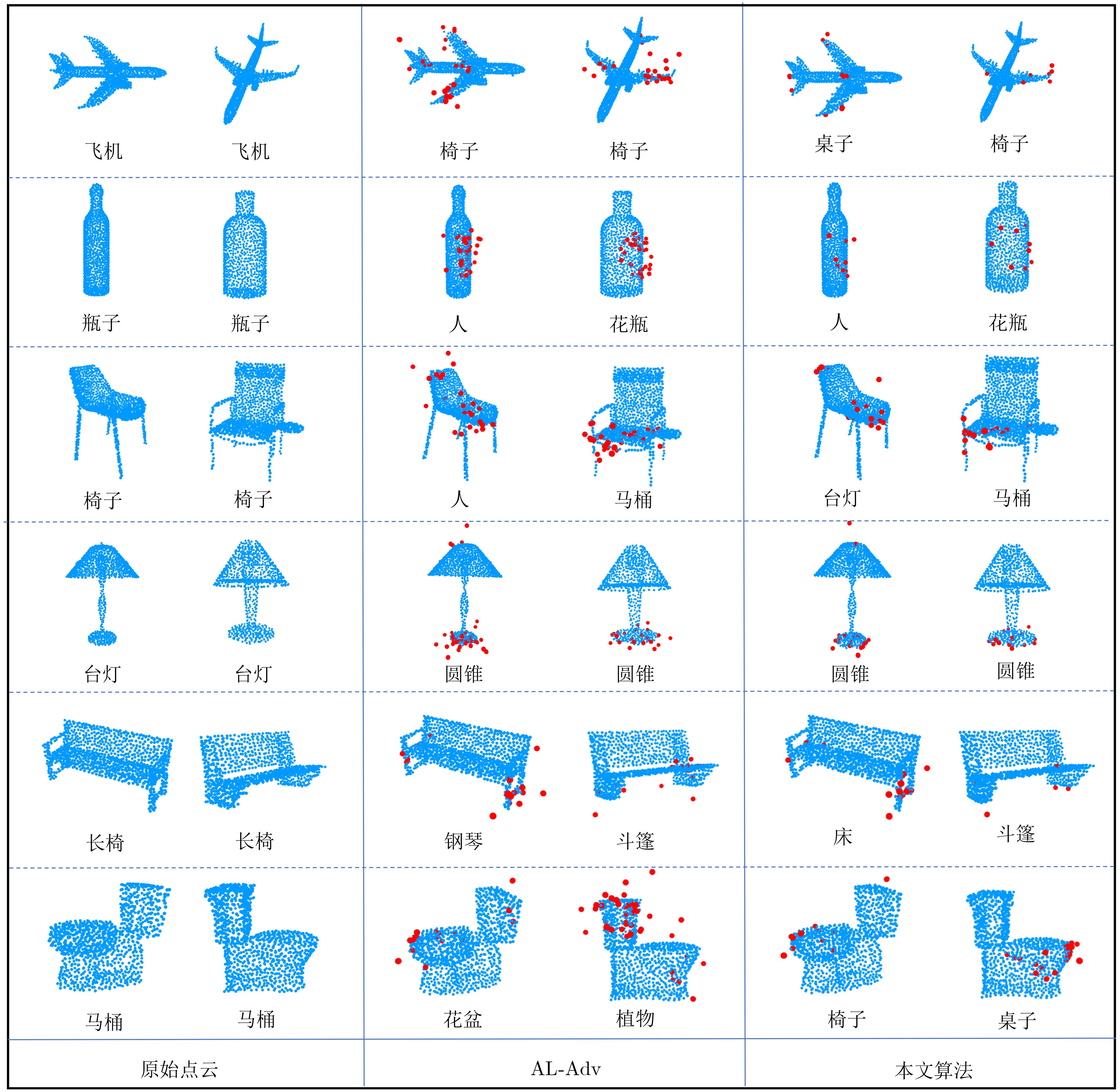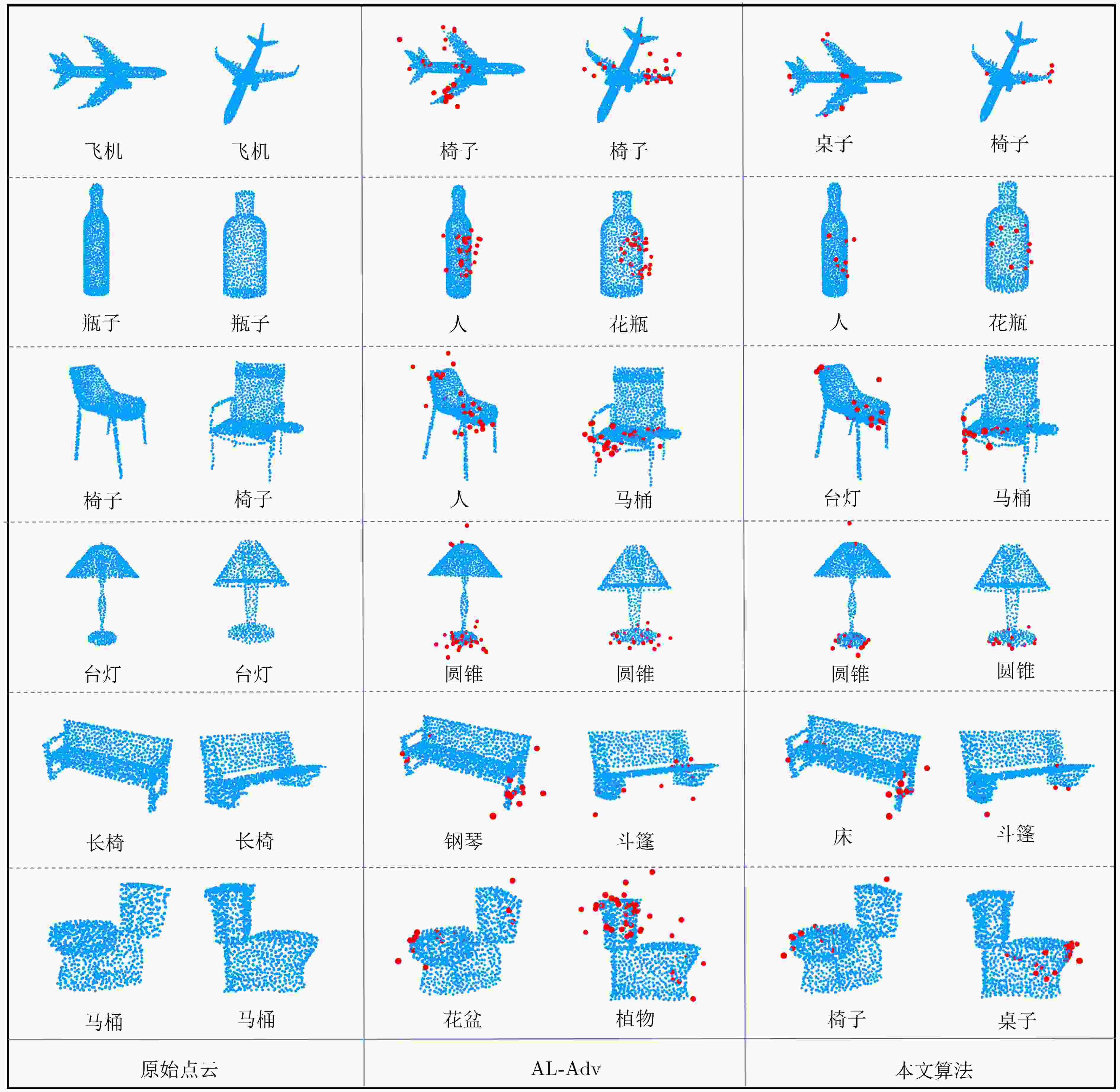图 4 ModelNet40[19]中的对抗点云可视化