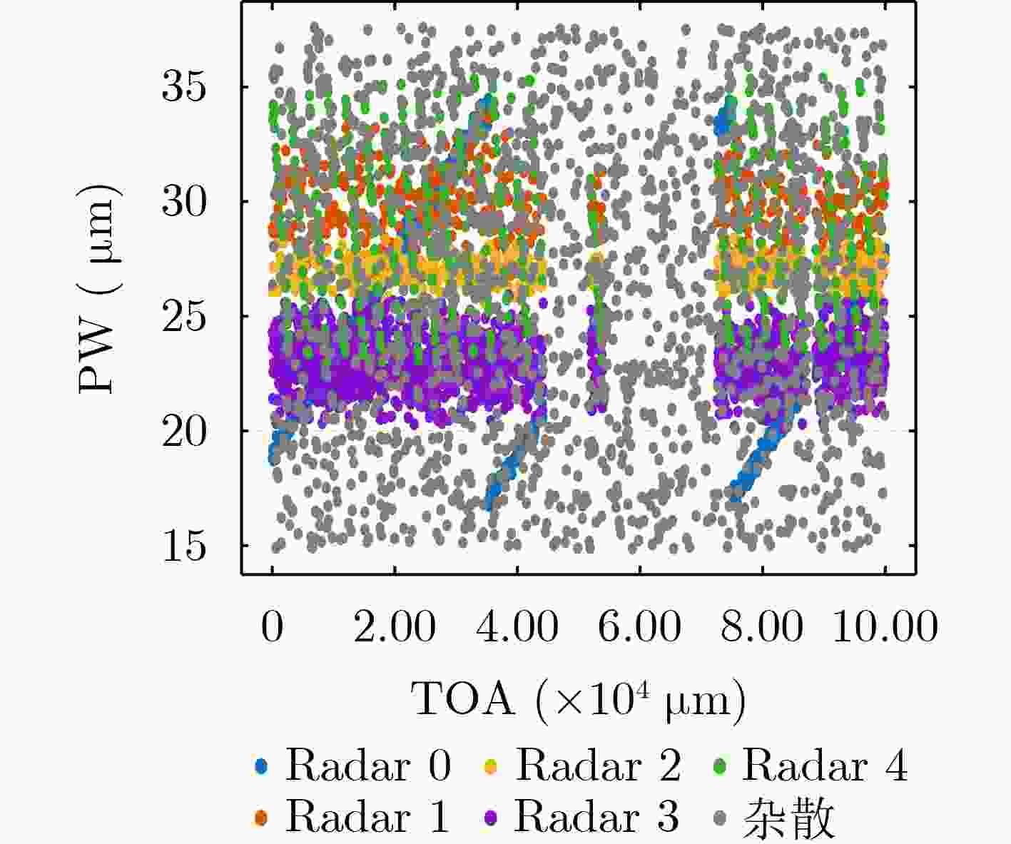 站编号 X/km Y/km Z/km 辐射源编号 X/km Y/km Z/km PRI/$ \mu \text{s} $ CF/GHz PW/$ \mu \text{s} $ S0 20 0 0 Radar 0 100 120 120 70 抖动 8.0~9.4 组变 15 滑变 S1 0 –100 0 Radar 1 80 210 210 125/162/100参差 7.8~8.5 捷变 22抖动 S2 0 10 0 Radar 2 130 146 146 85 滑变 7.6~8.7 组变 20 固定 S3 –40 80 0 Radar 3 150 30 30 40 固定 8.2~9.2 捷变 18抖动 S4 60 –60 20 Radar 4 100 102 102 100/130/80 参差 8.4~9.5 组变 23滑变 S5 –70 –30 –15 Radar 5 110 90 90 85抖动 8.6-9.6组变 22抖动 S6 30 140 10 Radar 6 95 160 160 140/95/180参差 7.5-8.3捷变 25固定 S7 –10 200 30 Radar 7 140 100 100 70滑变 8.1-9.0组变 18滑变 S8 80 –120 –25 Radar 8 120 60 60 44 固定 9.0-9.8捷变 16抖动 Radar 9 105 130 130 90/120/150参差 7.9-8.8组变 29滑变 Radar 10 115 110 110 95抖动 8.3-9.1捷变 24固定 Radar 11 125 140 140 130滑变 8.5-9.4组变 28固定 表 2 类别偏移档位设置