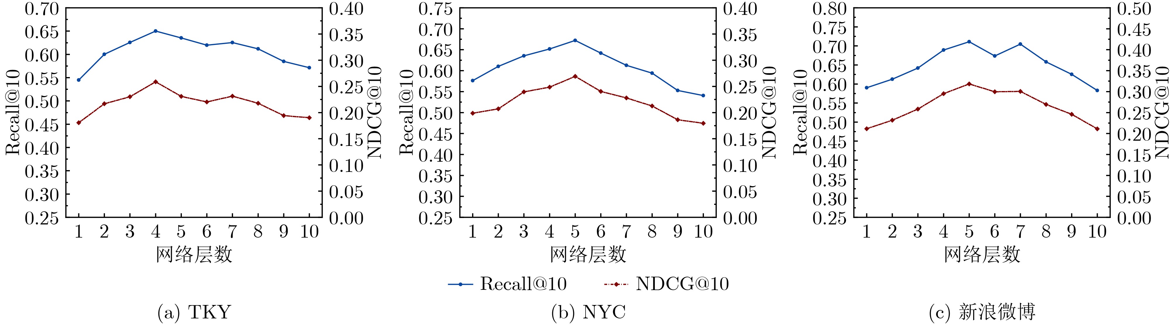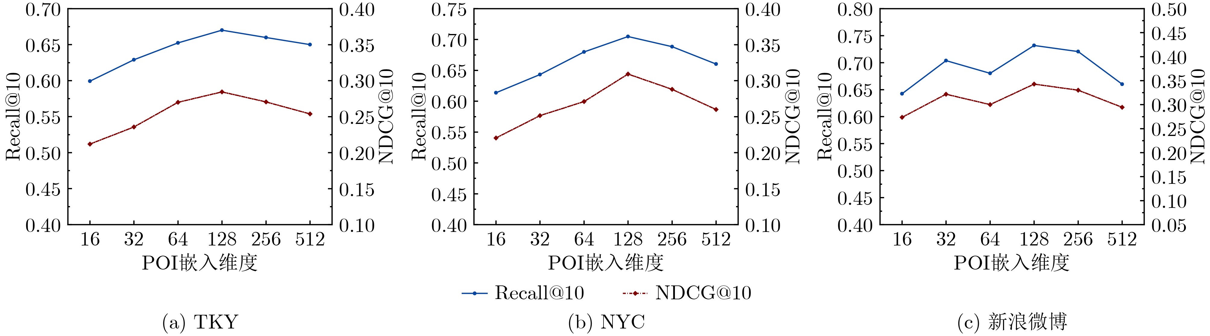 数据集名称 用户数 POI数 区域数 POI类别数 签到总数 TKY 2292 11,333 642 211 368,256 NYC 1056 8140 1257 228 142,622 新浪微博 1951 1508 516 134 279,761 表 2 超参数设置