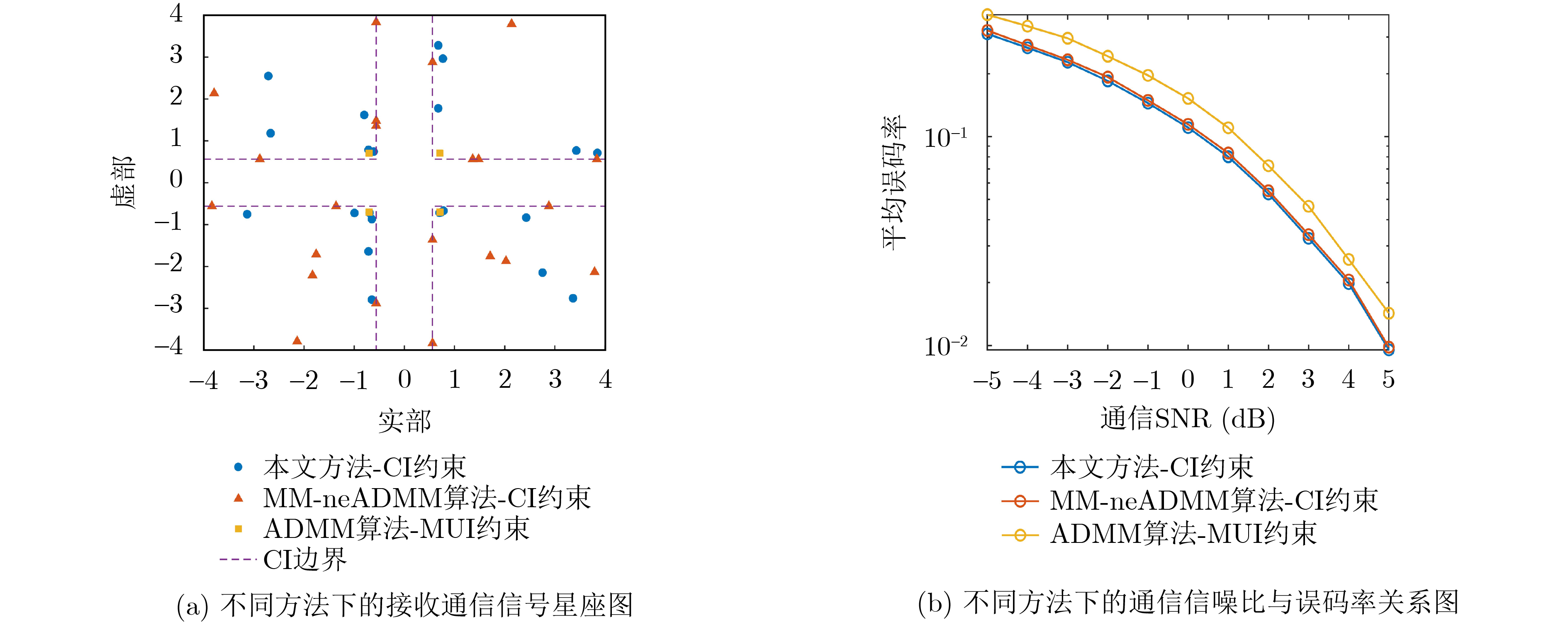 Objective  With the rapid development of Sixth-Generation (6G) communication technology, Integrated Sensing And Communication (ISAC) systems are regarded as key enablers of emerging applications such as the Internet of Things, smart cities, and autonomous driving. High-precision communication and sensing are required under limited spectrum resources. However, most existing studies concentrate on the far-field region, where incomplete derivation of the sensing mutual information metric, neglect of scatterer interference, and insufficient consideration of communication-sensing trade-offs limit the flexibility of beamforming design and reduce practical effectiveness. As application scenarios expand, the demand for efficient integration of communication and sensing becomes more pronounced, particularly in near-field environments where scatterer interference strongly affects system performance In this work, beamforming design for near-field ISAC systems under scatterer interference is investigated. A general expression for sensing mutual information is derived, a multi-objective optimization problem is formulated, and auxiliary variables, the Schur complement, and the Dinkelbach algorithm are employed to obtain Pareto optimal solutions. The proposed method provides a flexible and effective approach for balancing communication and sensing performance, thereby enhancing overall system performance and resource utilization in diverse application scenarios. The findings serve as a valuable reference for the optimal trade-off design of communication and sensing in near-field ISAC systems.  Methods  The proposed beamforming design method first derives a general expression for sensing mutual information in near-field scenarios, explicitly accounting for and quantifying the effect of scatterer interference on sensing targets. A multi-objective optimization problem is then formulated, with the Signal-to-Interference-plus-Noise Ratio (SINR) of communication users and sensing mutual information as objectives. Within this multi-objective framework, communication and sensing performance can be flexibly balanced to satisfy the requirements of different application scenarios. To enable tractable optimization, the sensing mutual information expression is transformed into a Semi-Definite Programming (SDP) problem using auxiliary variables and the Schur complement. Multi-user SINR expressions are reformulated with the Dinkelbach algorithm to convert them into convex functions, facilitating efficient optimization. The multi-objective problem is subsequently reduced to a single-objective one by constructing a system utility function, and the Pareto optimal solution is obtained to achieve the optimal balance between communication and sensing performance. This method provides a flexible and effective design strategy for near-field ISAC systems, substantially enhancing overall system performance and resource utilization.  Results and Discussions  This study presents a beamforming design method that balances communication and sensing performance through innovative optimization strategies. The method derives the general expression of sensing mutual information under scatterer interference, formulates a multi-objective optimization problem with the SINR of communication users and sensing mutual information as objectives, and transforms the problem into a convex form using auxiliary variables, the Schur complement, and the Dinkelbach algorithm. The Pareto optimal solution is then obtained via a system utility function, enabling the optimal balance between communication and sensing performance. Simulation results demonstrate that adjusting the weight parameter ρ flexibly balances user communication and target sensing performance (Fig. 2). As ρ increases from 0 to 1, sensing mutual information rises while user rate decreases, showing that a controllable trade-off can be achieved by tuning weights. In multi-user scenarios, near-field ISAC systems exhibit superior performance compared with far-field systems (Fig. 3). Under near-field conditions, the proposed method achieves more flexible and adjustable trade-offs than the classic Zero-Forcing (ZF) algorithm and single-objective optimization algorithms (Fig. 4, Fig. 5), confirming its effectiveness and superiority in practical applications. Furthermore, the study reveals the interference pattern of scatterers on sensing targets with respect to distance (Fig. 6). The results indicate that the greater the distance difference between a scatterer and a sensing target, the weaker the interference on the target, with sensing mutual information gradually increasing and eventually converging. This finding provides a valuable reference for the design of near-field ISAC systems.  Conclusions  This paper proposes a beamforming design method for balancing communication and sensing performance by jointly optimizing sensing mutual information and communication rate. The method derives the general form of sensing mutual information, reformulates it as an SDP problem, and applies the Dinkelbach algorithm to process multi-user SINR expressions, thereby establishing a multi-objective optimization framework that can flexibly adapt to diverse application requirements. The results demonstrate three key findings: (1) The method enables flexible adjustment of communication and sensing performance, achieving an optimal trade-off through weight tuning, and allowing dynamic adaptation of system performance to specific application needs. (2) It reveals the interference pattern of scatterers on sensing targets with respect to distance, providing critical insights for near-field ISAC system design and supporting optimized system layout and parameter selection in complex environments. (3) In multi-user scenarios, the proposed approach outperforms traditional single-objective optimization methods in both communication rate and sensing mutual information, highlighting its competitiveness and pract