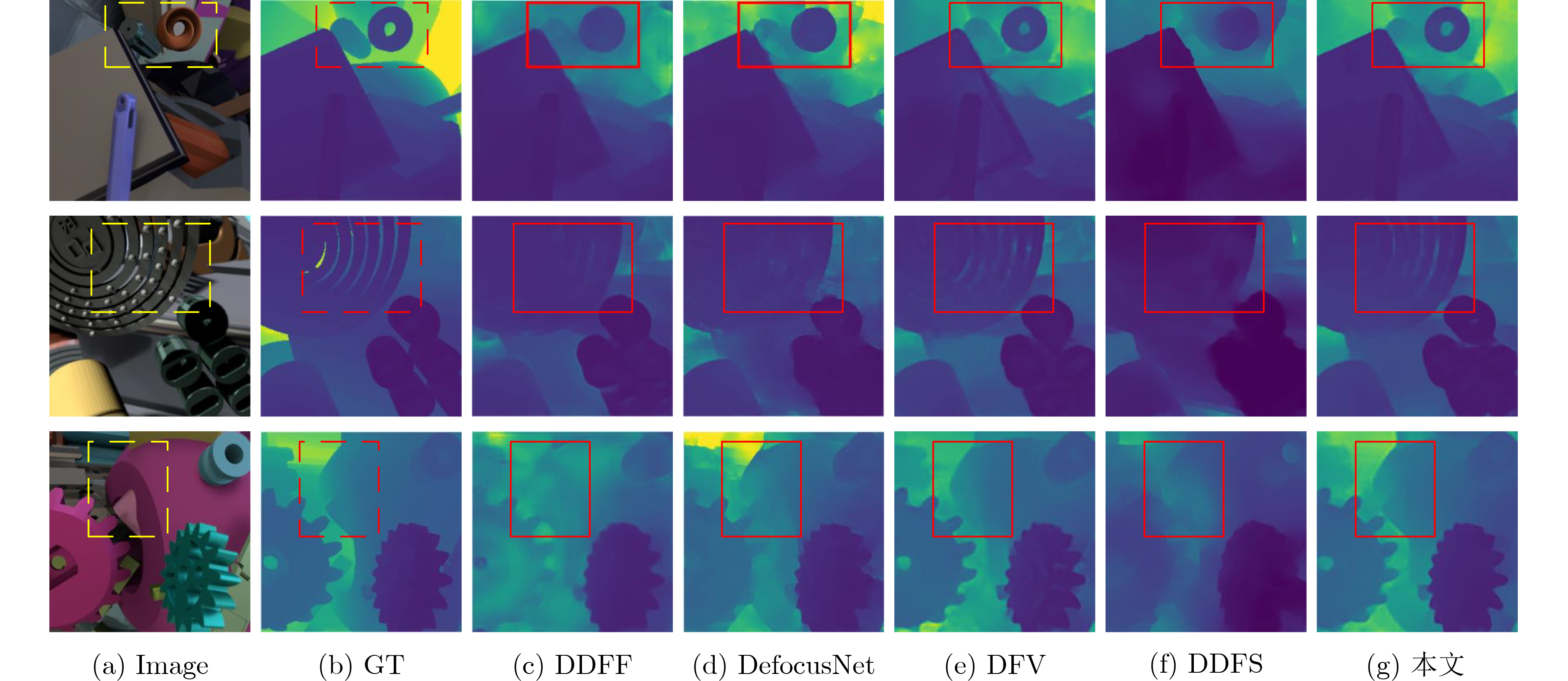 聚焦深度估计(DFF)通过分析图像中各像素的焦点变化来推断场景深度,任务的关键在于定位焦堆栈中的最佳聚焦像素点。然而弱纹理区域中焦点变化通常较为细微,导致聚焦区域检测困难,影响深度估计的准确性。因此,该文提出了一种结合聚焦度量与上下文信息的焦堆栈深度估计网络,方法能够精确识别焦堆栈中最佳聚焦像素,并推断出可靠的深度图。文中将聚焦度量算子概念融入深度学习框架,通过增强聚焦区域的特征表达,提升网络对弱纹理区域细微焦点变化的感知能力。此外,文章引入语义上下文引导机制,利用整合的场景语义信息,指导焦点体积的滤波优化。这使网络能同时捕获局部焦点细节与全局上下文信息,实现对弱纹理区域焦点状态的全面推断。综合实验结果,所提出的模型在主观质量和客观指标相比其他算法都有明显提升,具有良好的泛化能力。