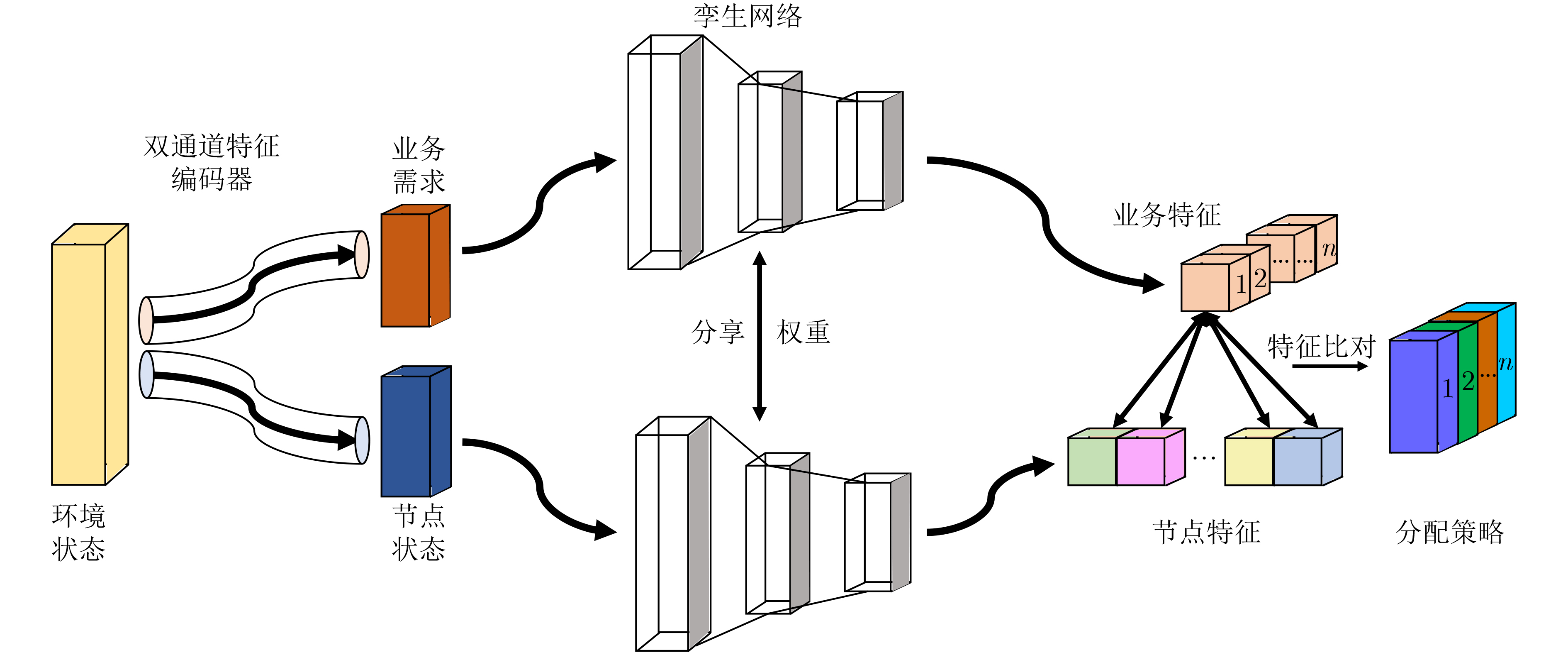 Objective With the rapid growth of data volume at the edge of the Internet of Things (IoT), traditional centralized computing architectures are inadequate to meet real-time processing requirements. Due to the limited computing and storage capabilities of IoT devices, data overflow frequently occurs when handling large volumes of information. Meanwhile, the reliance on battery power exacerbates energy shortages, further hindering continuous operation and data processing. Unmanned Aerial Vehicles (UAVs), with their flexible deployment capabilities, are increasingly being integrated into distributed computing environments to improve IoT data processing efficiency. However, the stochastic and dynamic nature of IoT user demands presents significant challenges for existing resource scheduling schemes, which struggle to effectively coordinate UAV deployments. Moreover, most studies focus on single-objective optimization, making it difficult to simultaneously balance energy harvesting, energy consumption, system latency, and data transmission rates under complex environmental conditions. To address these challenges, this paper proposes an optimization framework for a UAV-assisted, wireless-powered Mobile Edge Computing (MEC) system based on an improved Multi-Objective Deep Deterministic Policy Gradient (MODDPG) algorithm. The proposed method jointly optimizes task offloading, energy harvesting, flying energy consumption, and system latency, enhancing the overall performance and feasibility of IoT systems. Methods This paper designs a UAV-assisted, wireless-powered MEC system model, where the UAV follows a “fly-hover-communicate” protocol and operates in full-duplex mode during hovering to simultaneously perform data collection and energy transmission. The system model integrates a propulsion energy consumption model and a nonlinear energy harvesting model, formulating a multi-objective optimization problem based on task generation, energy state, and wireless channel conditions of IoT devices. To address this optimization problem, an improved MODDPG algorithm is proposed. A multi-dimensional reward function is constructed to maximize the data transmission rate and total harvested energy while minimizing system energy consumption and task offloading latency within a unified reinforcement learning framework. The agent continuously interacts with the dynamic environment to optimize the UAV’s flight trajectory, task offloading ratio, and energy transmission strategy. The proposed method is implemented and validated through extensive simulations conducted on the Python platform under various experimental settings. Results and Discussions To evaluate the performance of the proposed algorithm, comparative experiments are conducted against four other control strategies. The impact of different data collection coverage radii on the proposed strategy is analyzed (Fig. 3, Fig. 4). In terms of total data transmission rate, the \begin{document}${P_{\rm{MODDPG}}}$\end{document} strategy consistently ranks second to the maximum throughput strategy across all coverage settings, while significantly outperforming the other three strategies (Fig. 3(a)). Regarding total harvested energy, \begin{document}${P_{\rm{MODDPG}}}$\end{document} achieves the highest energy collection in all scenarios, with performance improving as the coverage radius increases (Fig. 3(b)), demonstrating its capability to enhance energy transmission coverage and system efficiency. In terms of system energy consumption, the \begin{document}${P_{{V_{\max }}}}$\end{document} strategy exhibits the highest energy usage, whereas \begin{document}${P_{\rm{MODDPG}}}$\end{document} effectively controls flight energy consumption, maintaining significantly lower energy usage compared to high-speed flying strategies (Fig. 3(c)). For average latency, \begin{document}${P_{\rm{MODDPG}}}$\end{document} achieves lower latency than the \begin{document}$P_{V_{\max}} $\end{document} strategy and the \begin{document}$P_{V_{\mathrm{ME}}} $\end{document} strategy method in most cases (Fig. 3(d)). In terms of service performance, \begin{document}${P_{\rm{MODDPG}}}$\end{document} demonstrates superior results across multiple metrics, including the number of uploading users, average harvested energy, average number of charged users per hovering instance, and the number of users experiencing data overflow, with particularly significant advantages in energy collection and reducing data overflow rates. (Fig. 4(a), Fig. 4(b), Fig. 4(c), Fig. 4(d)). In experiments with varying IoT device densities (Fig. 5, Fig. 6), \begin{document}${P_{\rm{MODDPG}}}$\end{document} exhibits strong environmental adaptability. As device density increases and resource competition intensifies, \begin{document}${P_{\rm{MODDPG}}}$\end{document} intelligently optimizes flight paths and resource scheduling, maintaining high data transmission rates and energy harvesting levels while effectively suppressing system latency and data overflow. Furthermore, simulation results under different task load scenarios (small and large tasks) (Fig. 7) indicate that \begin{document}${P_{\rm{MODDPG}}}$\end{document} can flexibly adjust its strategy based on task load variations, maximizing resource utilization. Even under heavy load conditions, the proposed algorithm maintains superior data rates, energy harvesting efficiency, and system stability, effectively coping with dynamic traffic variations. Notably, \begin{document}${P_{\rm{MODDPG}}}$\end{document} not only delivers outstanding optimization performance but also demonstrates significantly faster convergence during training compared to traditional methods such as Proximal Policy Optimization (PPO) and TD3. Overall,\begin{document}${P_{\rm{MODDPG}}}$\end{document} outperforms existing strategies in multi-objective optimization, system energy efficiency enhancement, task scheduling flexibility, and environmental adaptability. Conclusions This paper addre