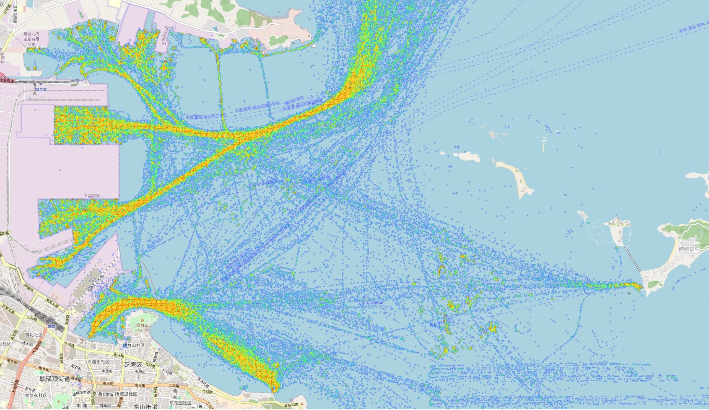 图  4  基于AIS数据的芝罘湾船只热力图