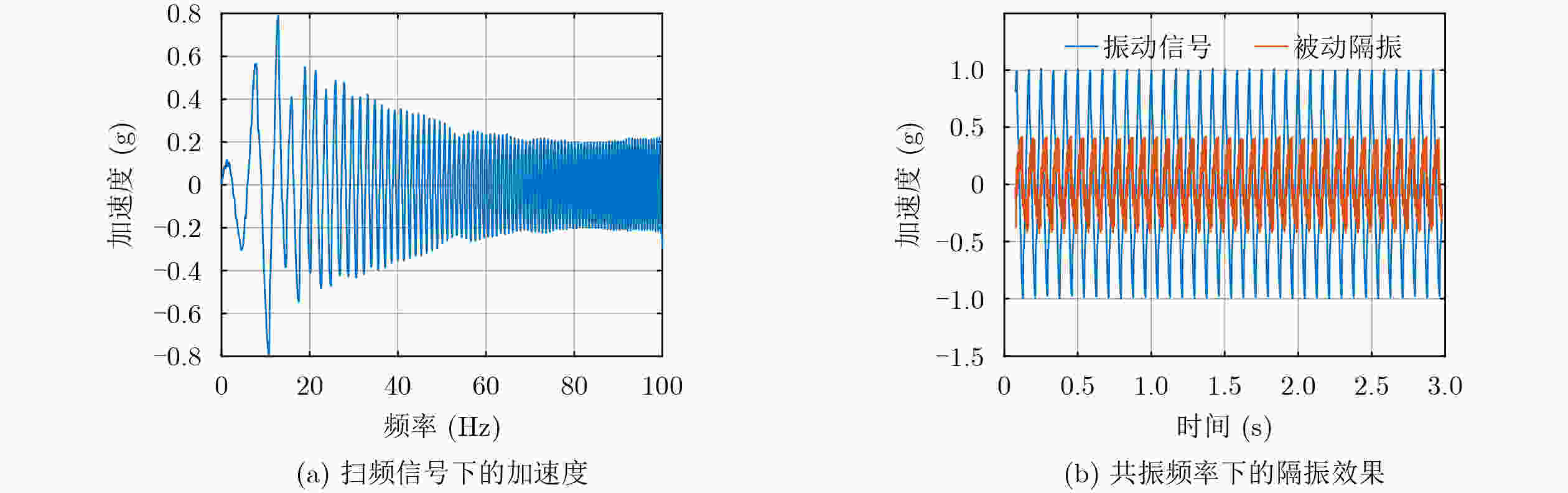 Abstract:Objective Precision instruments now operate under increasingly demanding vibration conditions, and conventional passive isolation methods are insufficient for maintaining stable laboratory environments. Vibrations generated by personnel movement, machinery operation, and vehicle transit can travel long distances and penetrate structural materials, reaching instrument platforms and reducing measurement accuracy, stability, and reliability. Passive isolation units such as rubber elements and springs show limited performance when dealing with low-frequency and small-amplitude excitation. Quasi-Zero Stiffness (QZS) systems improve low-frequency isolation but their performance depends on amplitude and requires strict installation accuracy. Active vibration isolation uses controlled actuators between the vibration source and the support structure to reduce disturbances. Piezoelectric ceramics offer high precision and rapid response, and are widely applied in such systems. Purely active isolation, however, may perform poorly at high frequencies due to sensor sampling limitations and actuator response bandwidth. High-frequency or large-amplitude excitation also results in high actuator energy demand, while the hysteresis characteristics of piezoelectric ceramics reduce control precision. Combining active and passive approaches is therefore an effective strategy for ensuring vibration stability in precision laboratory applications. Methods A hybrid vibration isolation strategy is developed by integrating a piezoelectric actuator with a QZS mechanism. A stacked piezoelectric ceramic actuator is designed to generate the required output force and displacement, and elastic spacers are used to apply a preload that improves operational stability and linearity. The QZS system is formed by combining positive and negative stiffness components to achieve high static stiffness with low dynamic stiffness. To address hysteresis in the piezoelectric actuator, an improved Bouc-Wen (B-W) model is adopted and an inverse model is constructed to enable hysteresis compensation. The actuator is then coupled with the QZS structure, and the vibration isolation performance of the hybrid system is assessed through numerical simulation. Results and Discussions An active-passive vibration isolation device is developed, comprising a QZS system formed by linear springs and an active piezoelectric stack actuator ( Fig. 9a ). Because the traditional B-W algorithm does not accurately describe the dynamic relationship between acceleration and voltage, a voltage-derivative term (Equation 13) is introduced to improve the conventional model. This modification refines the force-voltage representation, enhances model adaptability, and enables accurate description of the acceleration-voltage response over a broader operating range. Forward model parameters are identified using the differential evolution algorithm (Table 1 ), and an inverse model is constructed through direct inversion with parameters obtained using the same optimization method (Table 2 ). The forward and inverse modules are then cascaded to compensate for hysteresis (Fig. 8 ). Dynamic equations for the QZS system and the linearized piezoelectric actuator are derived (Equation 16). An adaptive sliding-mode controller incorporating a Luenberger sliding-mode observer is subsequently designed to regulate vibration signals, and active isolation performance is verified.Conclusions The proposed hybrid vibration isolation design integrates the passive low-frequency isolation capability of the QZS system with the active control potential of the piezoelectric actuator, offering a feasible approach for vibration suppression in precision instruments. The hysteresis behavior of piezoelectric ceramics is characterized and fitted effectively, and an inverse model is established to compensate for the nonlinear voltage-acceleration response. A dynamic model of the combined passive-active configuration is derived, and vibration signals are regulated using adaptive sliding-mode control with a Luenberger sliding-mode observer. The resulting system demonstrates stable vibration reduction, indicating strong applicability and research value. -