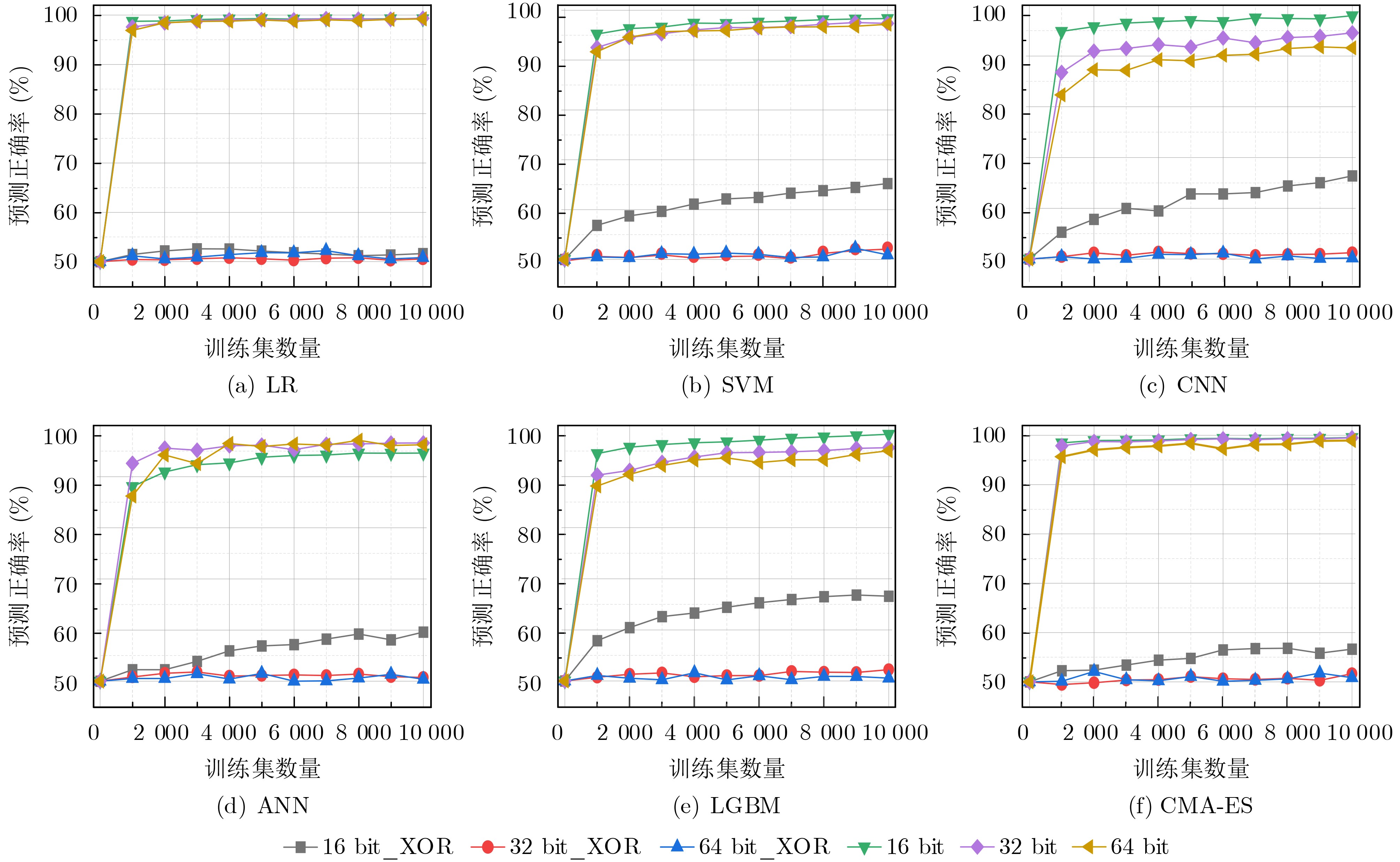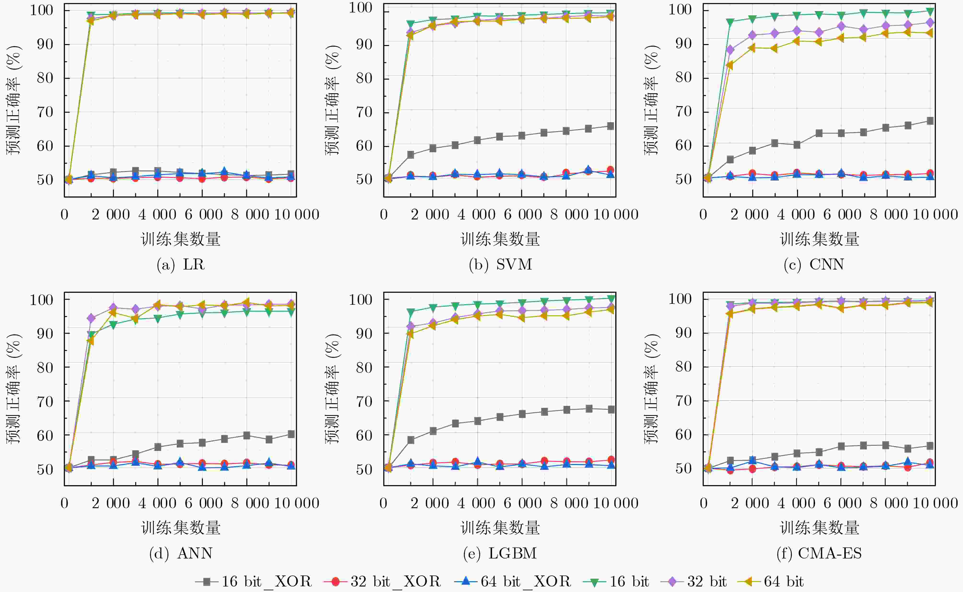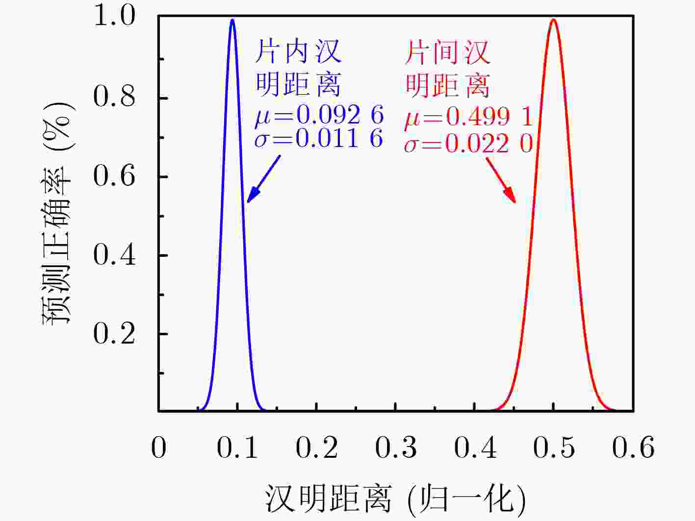 文献[13] 文献[11] 文献[15] 本文 工艺(nm) 28 65 65 28 PUF类型 放大器链 亚阈值分压器 放大器链 双稳态电路 存储功能 无 无 无 有 CRPs空间 3.7×1019 1.15×1018 - 232 ML预测正确率(%) 49.96 51.00 50.60 52.34 温度范围(°C) –40~100 0~50 –40~120 –20~80 电压范围(V)