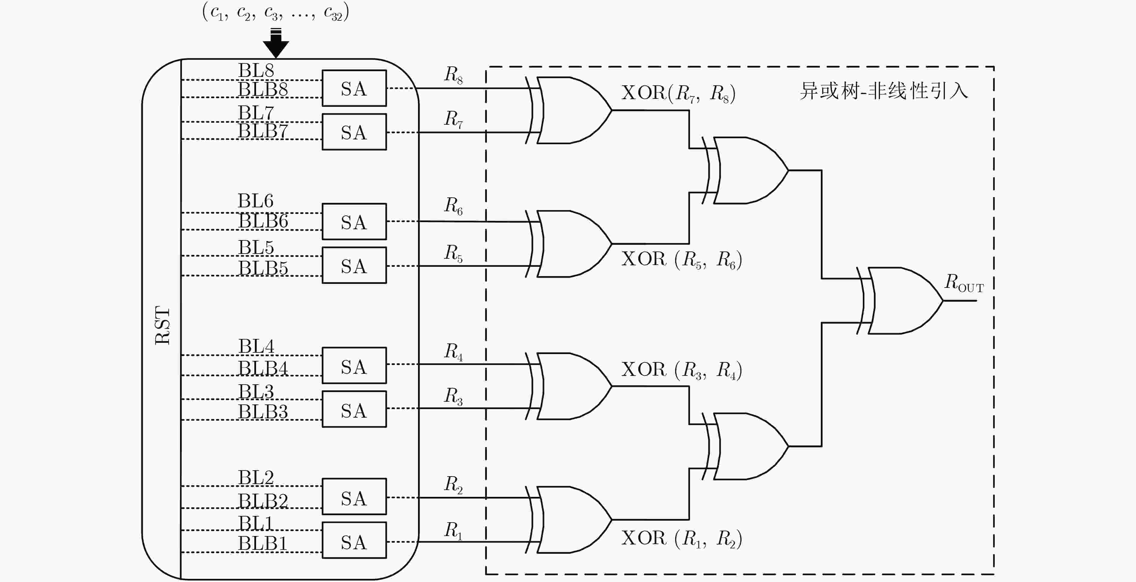 摘要: 物理不可克隆函数(PUF)作为芯片的唯一身份标识,在资源受限的物联网设备中应用前景广阔,但面临着硬件成本过高和其自身易受攻击而导致安全性不足的问题。该文基于双稳态电路的物理特性,提出一种交叉耦合结构的低开销、高安全性强PUF电路。首先,同时激活多个双稳态单元字线,指数级提升激励响应对数量;然后,利用异或树结构混淆多路PUF,提高PUF均匀性与抗攻击能力;最后,利用Virtuoso软件在TSMC 28 nm工艺下仿真验证,并分析其抗机器学习攻击能力与统计特性。实验结果表明,当机器学习训练集激励响应对数量达104时,逻辑回归、支持向量机、人工神经网络等经典机器学习算法预测率均接近50%的随机猜测,且PUF电路的随机性、唯一性和可靠性等性能均表现良好,硬件开销低于传统仲裁器PUF(APUF),适合应用在低成本的物联网设备认证场景。Abstract: