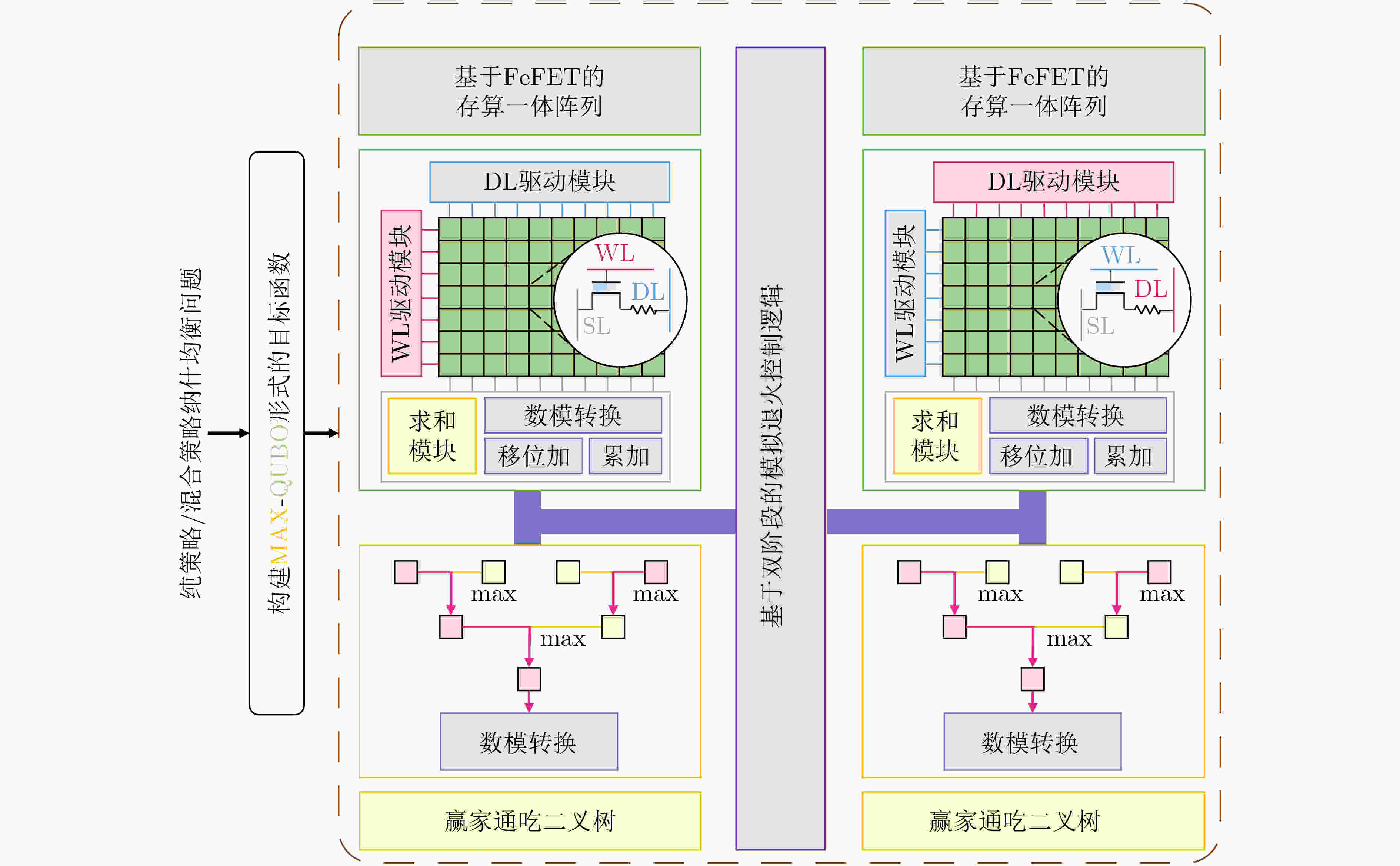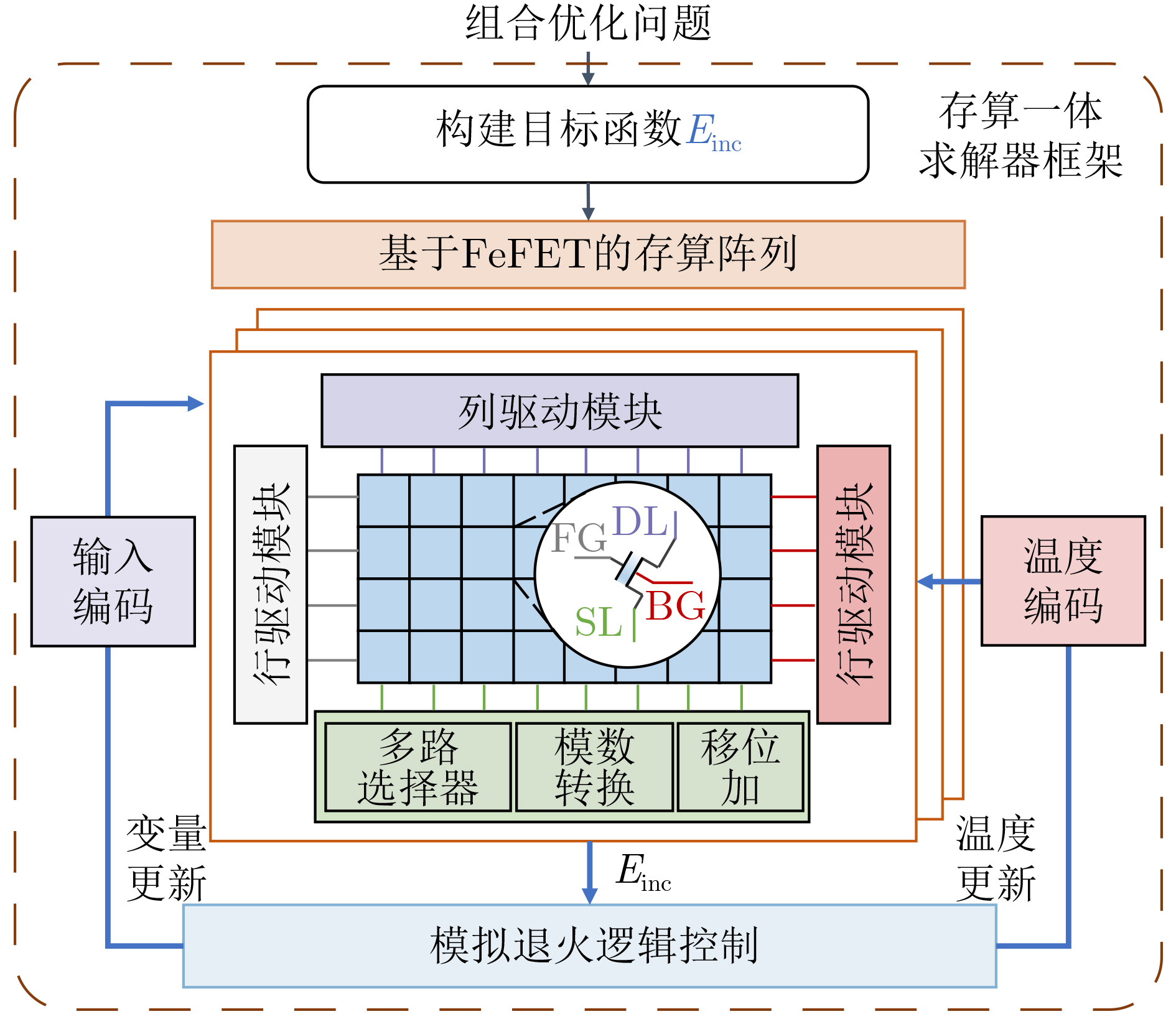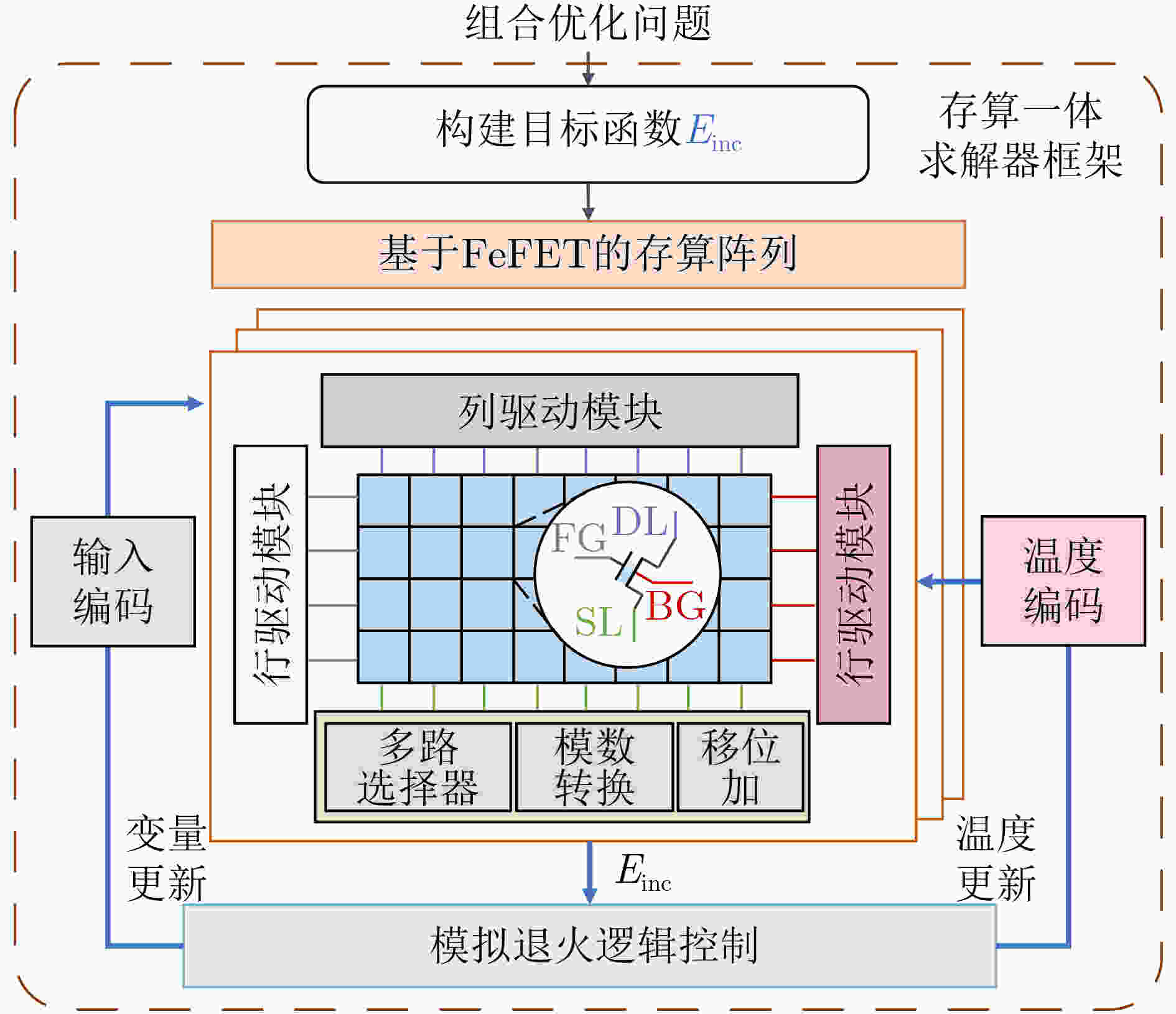 摘要: 组合优化问题在诸多领域应用广泛,大多属于非确定多项式时间难题,基于冯·诺依曼架构的传统数字计算机难以满足其极高计算复杂度的需求。具有阈值电压可编程特性和多端口输入结构的铁电晶体管(FeFET)为高效求解组合优化问题提供了新的机遇。基于FeFET的存算一体架构具有能效高、延时低等特点,同时支持对向量-矩阵及向量-矩阵-向量乘法等复杂算子的加速,非常适合求解组合优化问题。该文回顾了FeFET的器件特性,介绍了组合优化问题的基本求解过程,并进一步探讨了近年来面向等式约束、不等式约束和纳什均衡场景下基于FeFET的存算一体组合优化求解器工作。最后,该文从多个方面分析并展望了基于FeFET的存算一体组合优化求解器的前景与挑战。Abstract: