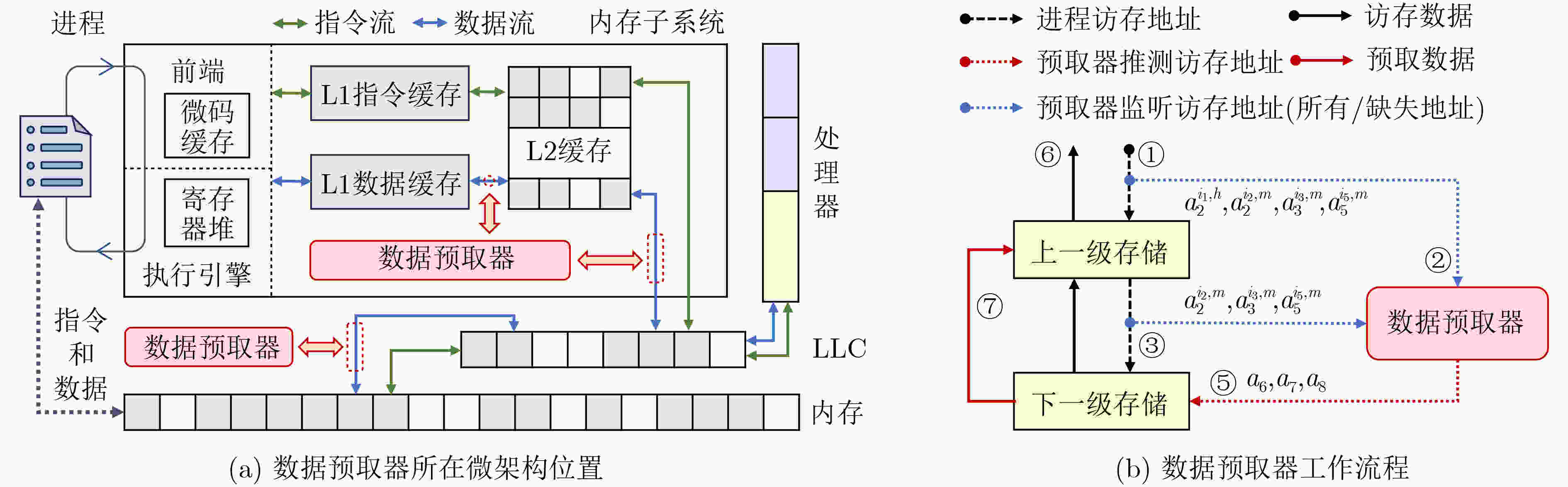 • 图  1  数据预取器在现代处理器微架构中的位置和基本原理