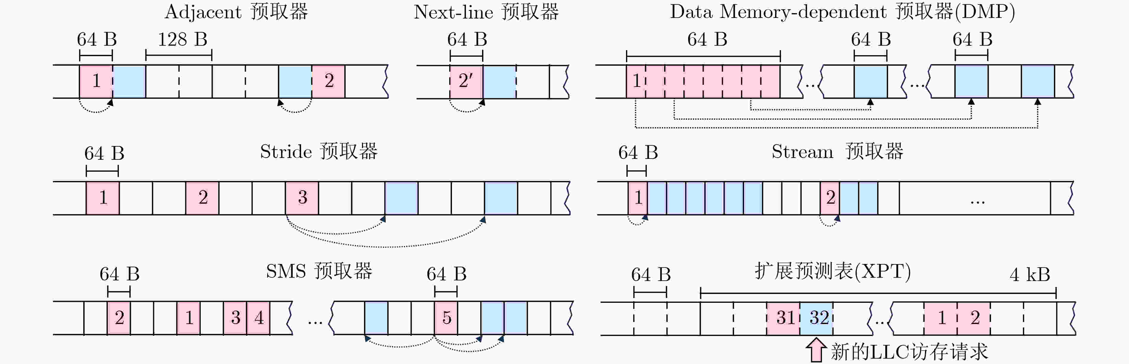 图  2  7种预取器的基本原理