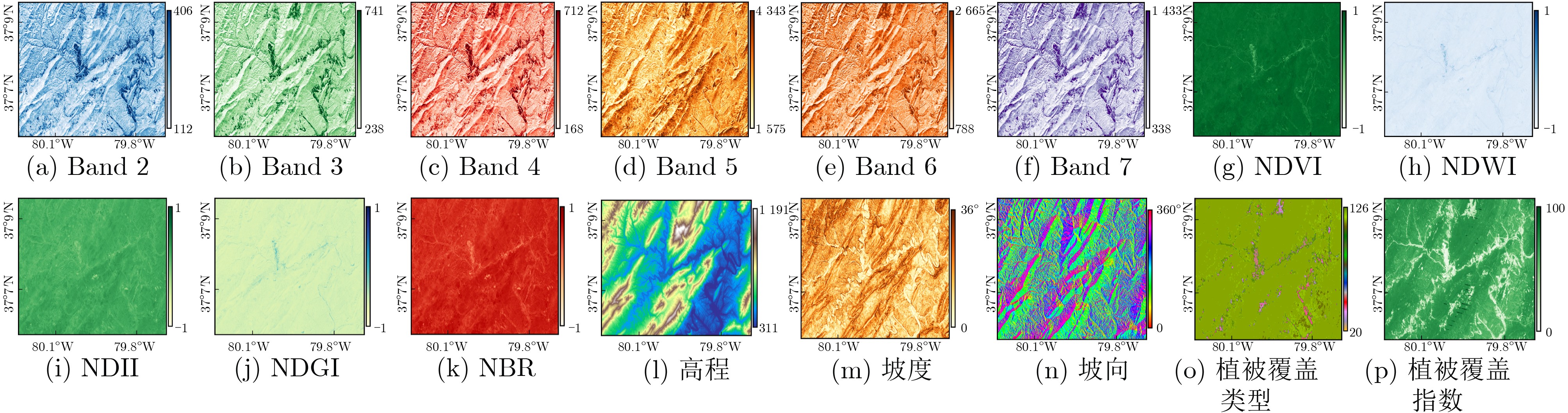 Band 7短波红外22.100$ \sim $2.30030用于地表特征分类、植被区分和热异常检测。