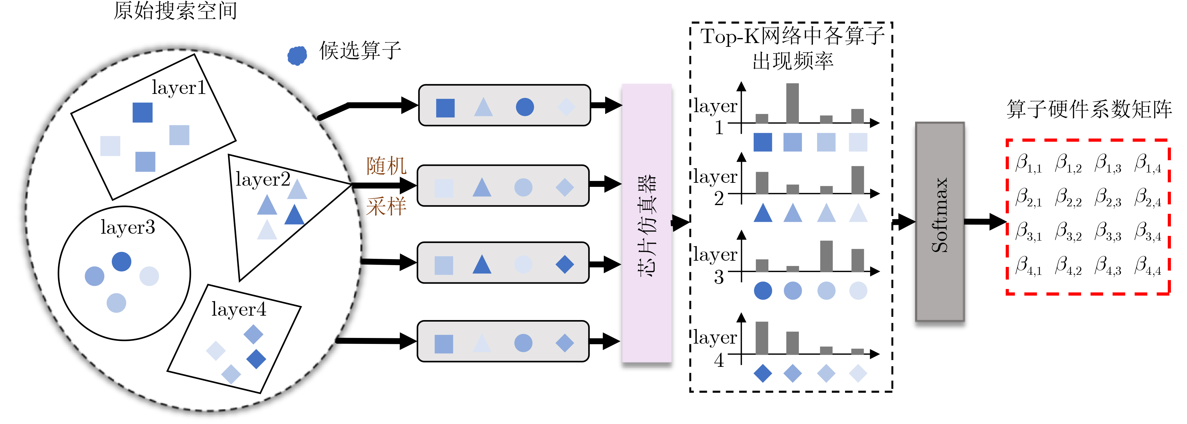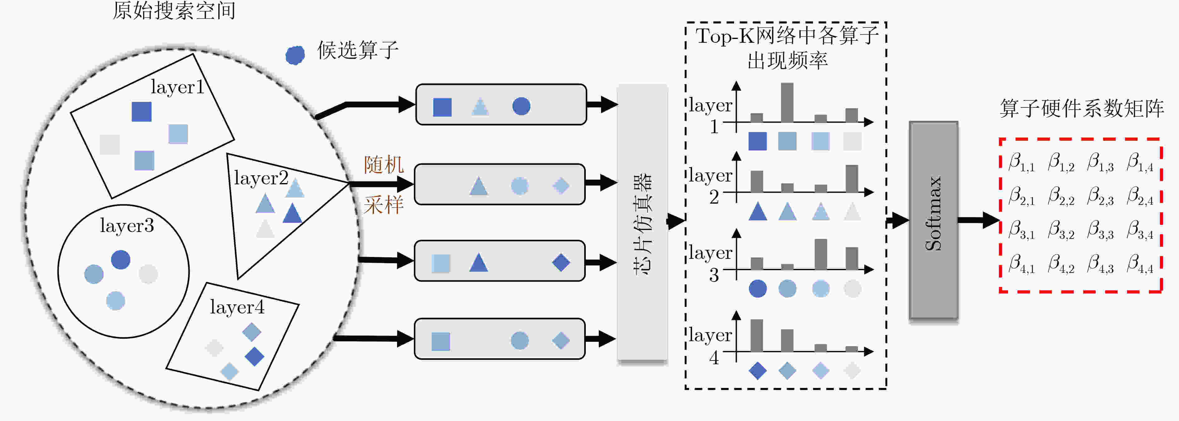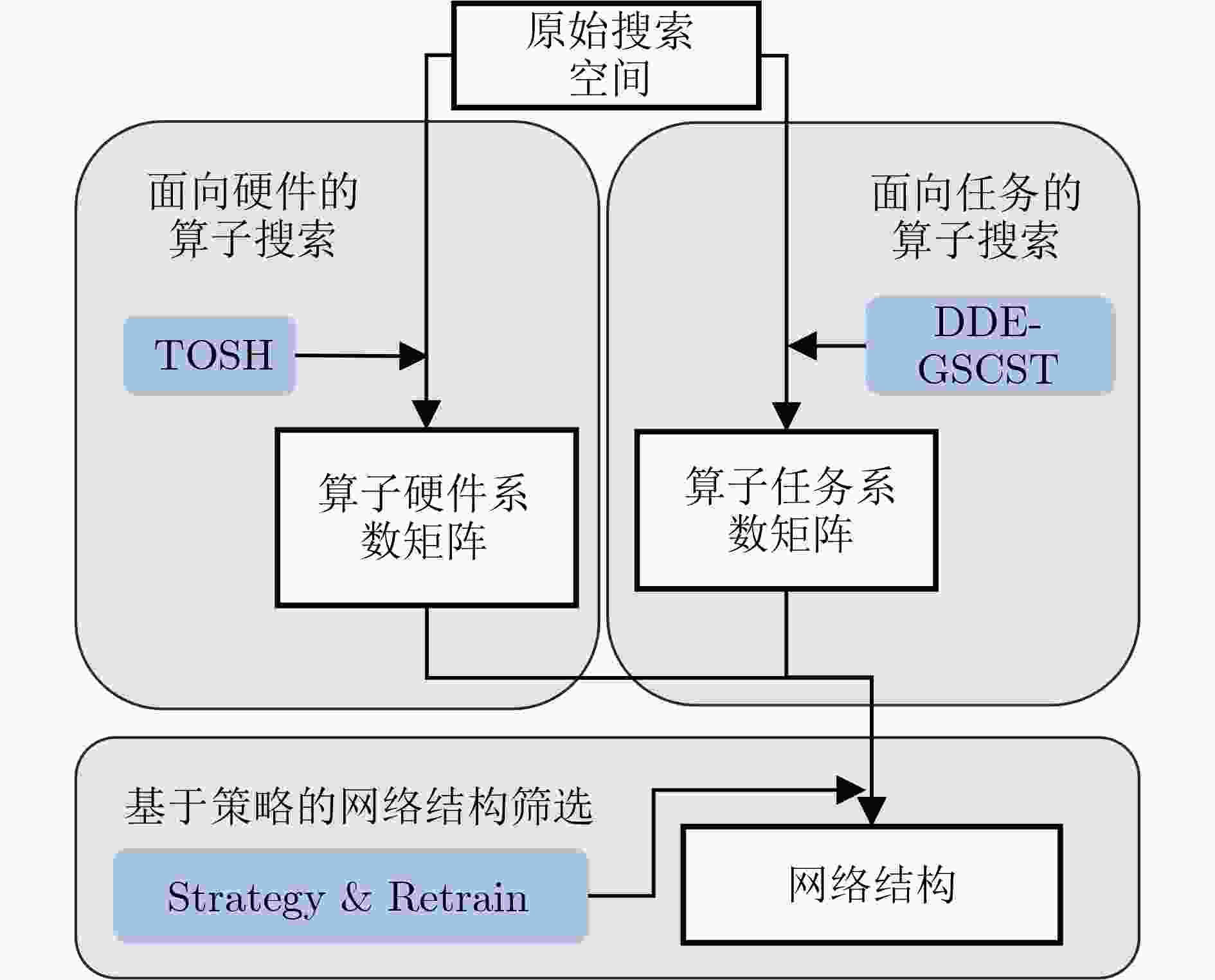 摘要: 基于忆阻器(RRAM)的存算一体(CIM)芯片被认为是解决卫星任务在轨智能处理过程中功耗受限与效率瓶颈的一条重要出路,在提升深度神经网络推理效率方面展现出巨大潜力。然而面向星上处理任务的复杂性,RRAM-CIM架构需要探索匹配的神经网络结构来发挥其能效优势。在 RRAM-CIM 场景下,现有方法在任务性能搜索中多采用基于随机采样的一次性训练,容易导致训练过程不稳定;在硬件性能建模上则常依赖预测器或算子级建模,前者需要高昂的初始成本,后者则忽视了网络整体的硬件表现。为此,该文提出NAS4CIM搜索框架,并引入半解耦式蒸馏增强的梯度系数超网训练方法(DDE-GSCST),有效缓解候选算子间的干扰问题,提高搜索过程的稳定性和鲁棒性。同时,该文采用基于Top-K统计的算子选择策略,在保证任务精度的同时显著优化了硬件性能。在CIFAR-10与ImageNet数据集上的实验表明,该方法在相同硬件架构下较现有方法提升2.2%的最优精度,并降低33.3%的能耗-延迟积(EDP)。此外,基于真实RRAM宏单元的实片测试结果与仿真结果一致,进一步验证了方法的有效性。Abstract: