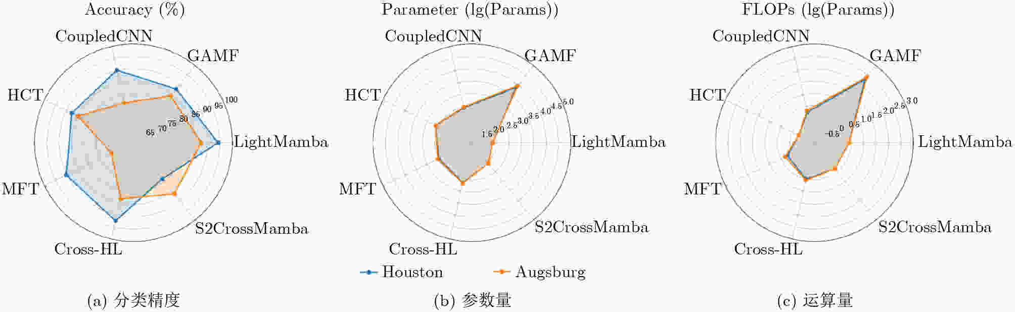 • 摘要: 高光谱图像(HSI)和激光雷达(LiDAR)数据的联合分类是遥感领域的一项关键任务,它通过融合丰富的光谱信息和精确的三维结构信息,显著提升了对地物识别的精度。然而,现有的基于深度学习(DL)的联合分类方法依然受限于高模型计算复杂度。因此,该文提出一种新颖的轻量级Mamba网络。该网络的核心是引入了先进的状态空间模型(SSM),其线性计算复杂度特性使其能够高效地建模遥感数据中的长距离上下文依赖关系。首先,多源对齐模块被用于对异构的HSI和LiDAR数据进行特征提取与空间-光谱维对齐,以提供一致的特征表示;其次,多源轻量Mamba模块以LiDAR的高程信息作为引导,采用轻量化设计融合双流序列,高效建模长距离依赖;最后,设计了一种基于MLP的分类器,并输出分类结果。在多个公开基准数据集上的实验结果表明,与当前先进方法相比,LightMamba在分类精度上取得了显著提升,同时保持了更低的计算复杂度,证明了基于Mamba的架构在遥感多源数据融合与分类任务中的巨大潜力。LightMamba的代码可访问https://www.scidb.cn/detail?dataSetId=064dc4ac5350418e87a8b82dd324737b&version=V1&code=j00173