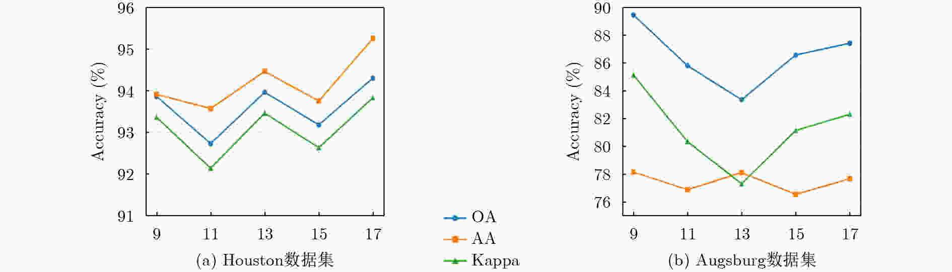 表  4  对Augsburg数据集采用不同方法获得的分类结果进行比较(最佳结果以粗体显示)(%)