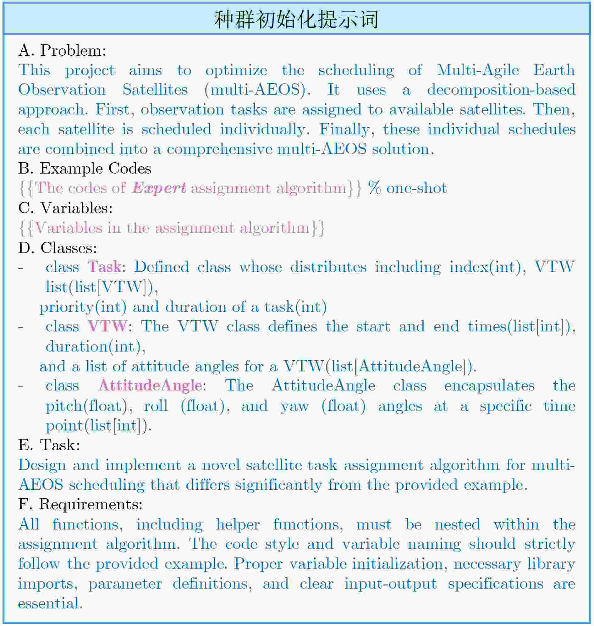 [1] ZHAO Qiang, YU Le, DU Zhenrong, et al . An overview of the applications of Earth observation satellite data: Impacts and future trends[J]. Remote Sensing,2022 ,14 (8 ):1863 . doi: 10.3390/rs14081863[2] HE Lei, DE WEERDT M, and YORKE-SMITH N . Time/sequence-dependent scheduling: The design and evaluation of a general purpose tabu-based adaptive large neighbourhood search algorithm[J]. Journal of Intelligent Manufacturing,2020 ,31 (4 ):1051 –1078 . doi: 10.1007/s10845-019-01518-4[3] WANG Xinwei, WU Guohua, XING Lining, et al . Agile Earth observation satellite scheduling over 20 years: Formulations, methods, and future directions[J]. IEEE Systems Journal,2021 ,15 (3 ):3881 –3892 . doi: 10.1109/JSYST.2020.2997050[4] PENG Guansheng, SONG Guopeng, HE Yongming, et al . Solving the agile Earth observation satellite scheduling problem with time-dependent transition times[J]. IEEE Transactions on Systems, Man, and Cybernetics: Systems,2022 ,52 (3 ):1614 –1625 . doi: 10.1109/TSMC.2020.3031738[5] CHO D H, KIM J H, CHOI H L, et al . Optimization-based scheduling method for agile Earth-observing satellite constellation[J]. Journal of Aerospace Information Systems,2018 ,15 (11 ):611 –626 . doi: 10.2514/1.I010620[6] WU Jian, YAO Feng, SONG Yanjie, et al . Frequent pattern-based parallel search approach for time-dependent agile earth observation satellite scheduling[J]. Information Sciences,2023 ,636 :118924 . doi: 10.1016/j.ins.2023.04.003[7] WEI Luona, CUI Yongqiang, CHEN Ming, et al . Multi-objective neural policy approach for agile earth satellite scheduling problem considering image quality[J]. Swarm and Evolutionary Computation,2025 ,94 :101857 . doi: 10.1016/j.swevo.2025.101857[8] LI Lei, DU Yonghao, YAO Feng, et al . Learning memetic algorithm based on variable population and neighborhood for multi-complex target scheduling of large-scale imaging satellites[J]. Swarm and Evolutionary Computation,2025 ,92 :101789 . doi: 10.1016/j.swevo.2024.101789[9] 彭观胜, 宋国鹏, 刘晓路, 等 . 考虑时间依赖收益特性的敏捷卫星调度问题[J]. 运筹与管理,2024 ,33 (8 ):1 –7 . doi: 10.12005/orms.2024.0243PENG Guansheng, SONG Guopeng, LIU Xiaolu, et al . Agile earth observation satellite scheduling with time-dependent profits[J]. Operations Research and Management Science,2024 ,33 (8 ):1 –7 . doi: 10.12005/orms.2024.0243[10] DU Yonghao, WANG Tao, XIN Bin, et al . A data-driven parallel scheduling approach for multiple agile earth observation satellites[J]. IEEE Transactions on Evolutionary Computation,2020 ,24 (4 ):679 –693 . doi: 10.1109/TEVC.2019.2934148[11] WANG Xinwei, GU Yi, WU Guohua, et al . Robust scheduling for multiple agile Earth observation satellites under cloud coverage uncertainty[J]. Computers & Industrial Engineering,2021 ,156 :107292 . doi: 10.1016/j.cie.2021.107292[12] SUN Haiquan, XIA Wei, WANG Zhilong, et al . Agile earth observation satellite scheduling algorithm for emergency tasks based on multiple strategies[J]. Journal of Systems Science and Systems Engineering,2021 ,30 (5 ):626 –646 . doi: 10.1007/s11518-021-5506-4[13] YAO Feng, CHEN Yingguo, WANG Ling, et al . A bilevel evolutionary algorithm for large-scale multiobjective task scheduling in multiagile earth observation satellite systems[J]. IEEE Transactions on Systems, Man, and Cybernetics: Systems,2024 ,54 (6 ):3512 –3524 . doi: 10.1109/TSMC.2024.3359265[14] CHEN Jiawei, WANG Feiran, CHEN Yingguo, et al . A generalized bilevel optimization model for large-scale task scheduling in multiple agile earth observation satellites[J]. Knowledge-Based Systems,2025 ,309 :112809 . doi: 10.1016/j.knosys.2024.112809[15] HE Yongming, WU Guohua, CHEN Yingwu, et al. A two-stage framework and reinforcement learning-based optimization algorithms for complex scheduling problems[J]. arXiv preprint arXiv: 2103.05847, 2021. [16] FENG Xiaoen, LI Yuqing, and XU Minqiang . Multi-satellite cooperative scheduling method for large-scale tasks based on hybrid graph neural network and metaheuristic algorithm[J]. Advanced Engineering Informatics,2024 ,60 :102362 . doi: 10.1016/j.aei.2024.102362[17] LI Rui, WANG Ling, SANG Hongyan, et al. LLM-assisted automatic memetic algorithm for lot-streaming hybrid job shop scheduling with variable sublots[J]. IEEE Transactions on Evolutionary Computation, 2025, Early Access. [18] LIU Fei, TONG Xialiang, YUAN Mingxuan, et al. Algorithm evolution using large language model[J]. arXiv preprint arXiv: 2311.15249, 2023. [19] LIU Fei, TONG Xialiang, YUAN Mingxuan, et al. Evolution of heuristics: Towards efficient automatic algorithm design using large language model[C]. Forty-first International Conference on Machine Learning, Vienna, Austria, 2024. [20] YE Haoran, WANG Jiarui, CAO Zhiguang, et al. ReEvo: Large language models as hyper-heuristics with reflective evolution[C]. The 38th International Conference on Neural Information Processing Systems, Vancouver, Canada, 2024: 1381. doi: 10.5555/3737916.3739297. [21] LI Hanxiao, GAO Kaizhou, DUAN Peiyong, et al . An improved artificial bee colony algorithm with Q-learning for solving permutation flow-shop scheduling problems[J]. IEEE Transactions on Systems, Man, and Cybernetics: Systems,2023 ,53 (5 ):2684 –2693 . doi: 10.1109/TSMC.2022.3219380[22] QI Rui, LI Junqing, WANG Juan, et al . QMOEA: A Q-learning-based multiobjective evolutionary algorithm for solving time-dependent green vehicle routing problems with time windows[J]. Information Sciences,2022 ,608 :178 –201 . doi: 10.1016/j.ins.2022.06.056[23] CHEN Ming, DU Yonghao, TANG Ke, et al . Learning to construct a solution for the agile satellite scheduling problem with time-dependent transition times[J]. IEEE Transactions on Systems, Man, and Cybernetics: Systems,2024 ,54 (10 ):5949 –5963 . doi: 10.1109/TSMC.2024.3411640[24] GONG Yupeng, LI Anshou, and PENG Xuan . Geometrical design method of Walker constellation in non-terrestrial network[J]. Acta Astronautica,2024 ,219 :618 