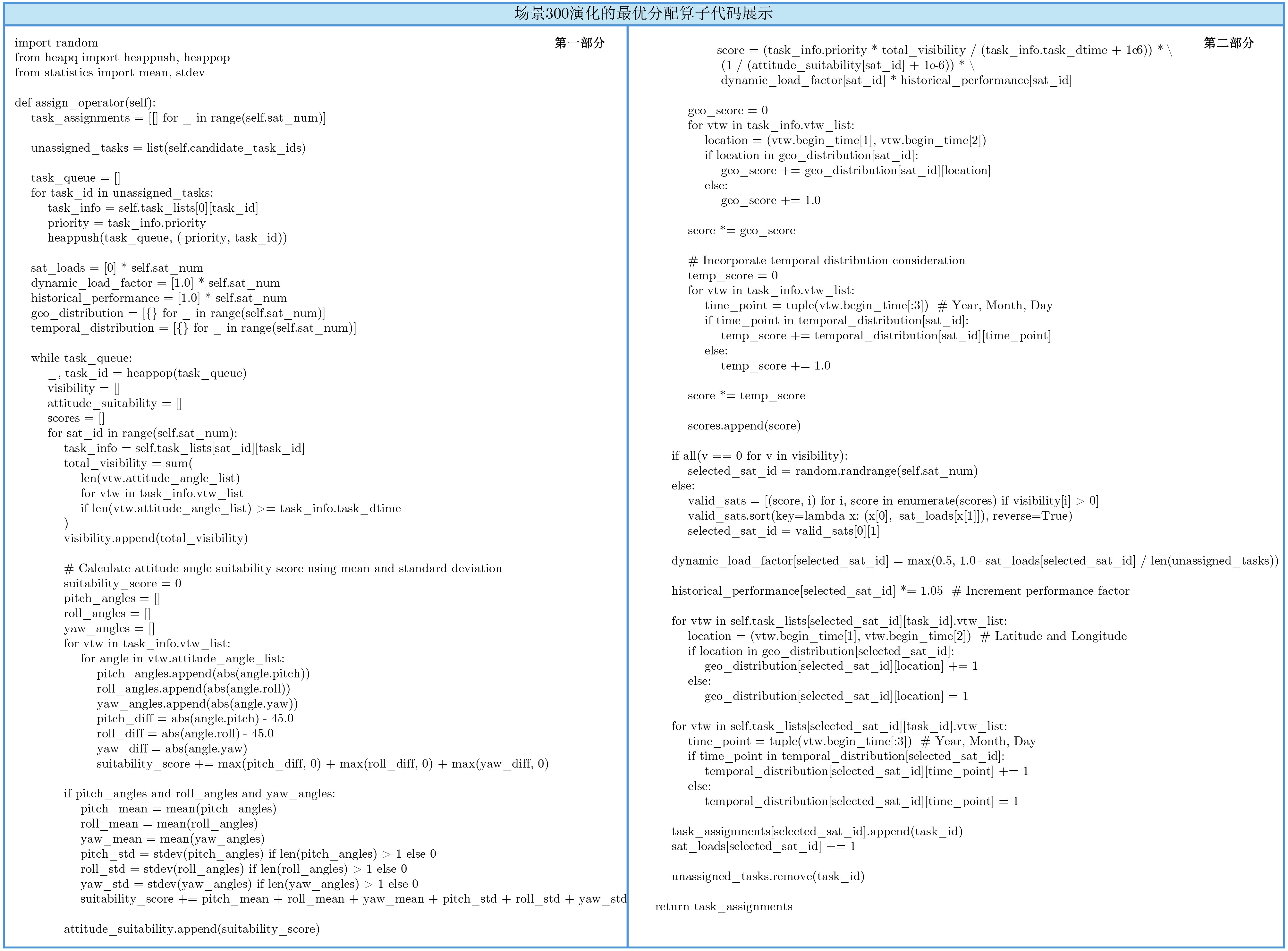 评估标准 具体描述 关注领域 专家对比 优先级与可见性综合评分 结合任务的内在优先级、对特定卫星的总有效可见时长,并根据任务执行时长进行归一化,形成基础价值分数:$ {S}_{\text{base}}(i,j)=\dfrac{{P}_{i}\cdot {V}_{ij}}{{D}_{i}+\epsilon } $ 任务价值与机会 融合多种单一规则,