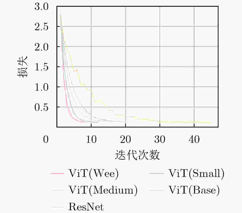 图  7  NWPU-RESISC45数据集上不同规模模型架构的收敛速度比较