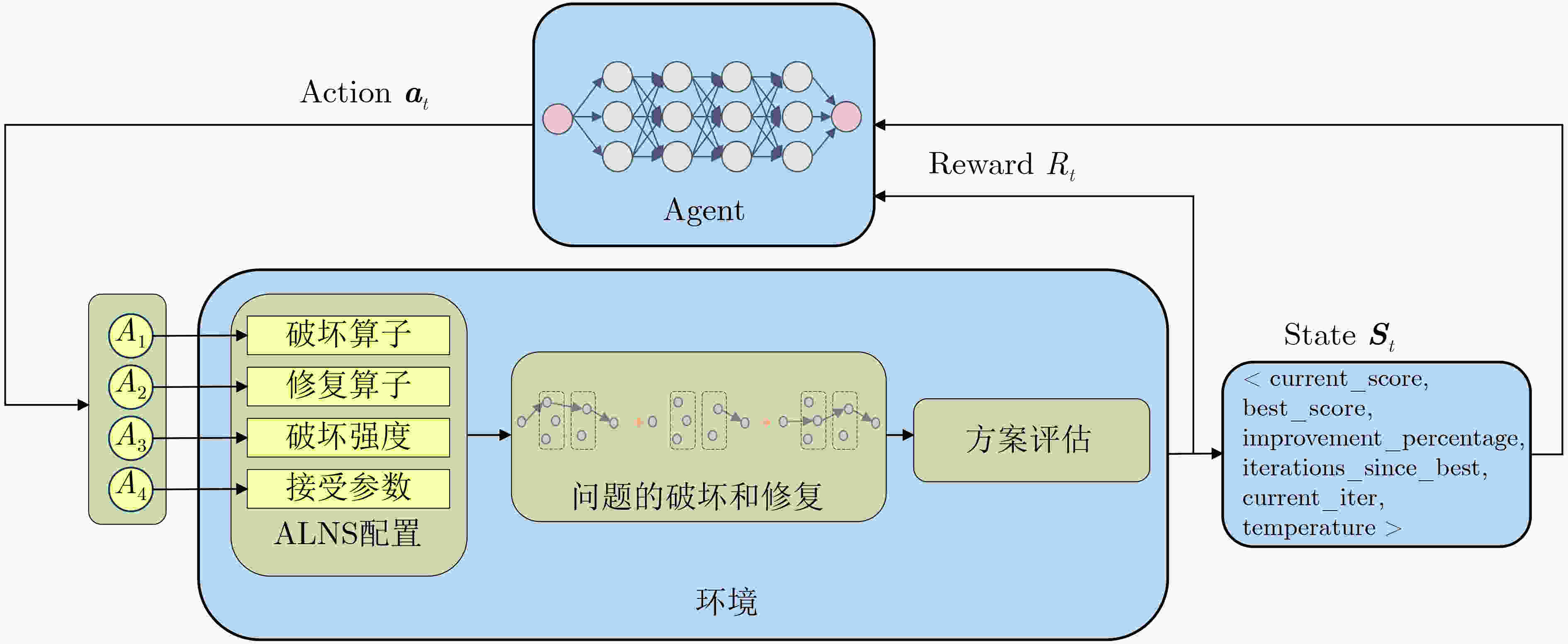 摘要: 卫星调度问题(Satellite Scheduling Problem, SSP)是典型的NP-hard组合优化问题,其目标是在满足一系列复杂物理和运行约束的条件下,最大化观测收益或完成任务数量。自适应大邻域搜索(Adaptive Large Neighborhood Search, ALNS)是求解此类问题的有效元启发式算法,其性能高度依赖于破坏与修复算子的选择策略。传统ALNS算法通常采用基于历史表现的启发式计分机制来调整算子选择概率,这种机制受参数影响较大且无法动态适应搜索过程中的复杂状态变化。为解决此问题,该文提出了一种基于深度强化学习(Deep Reinforcement Learning, DRL)的自适应大邻域搜索算法(DR-ALNS)。该算法将算子选择过程建模为一个马尔可夫决策过程,智能体利用深度强化学习在每次迭代中根据当前解的状态动态选择最合适的破坏与修复算子。通过端到端的学习,DRL智能体能够学习到一种隐式的、高效的算子选择策略,从而更好地引导搜索方向,提升算法的全局探索与局部开发能力。通过在标准的卫星调度问题测试集上进行实验,可以看出DR-ALNS算法产生的解的质量优于传统ALNS及其他算法。Abstract: