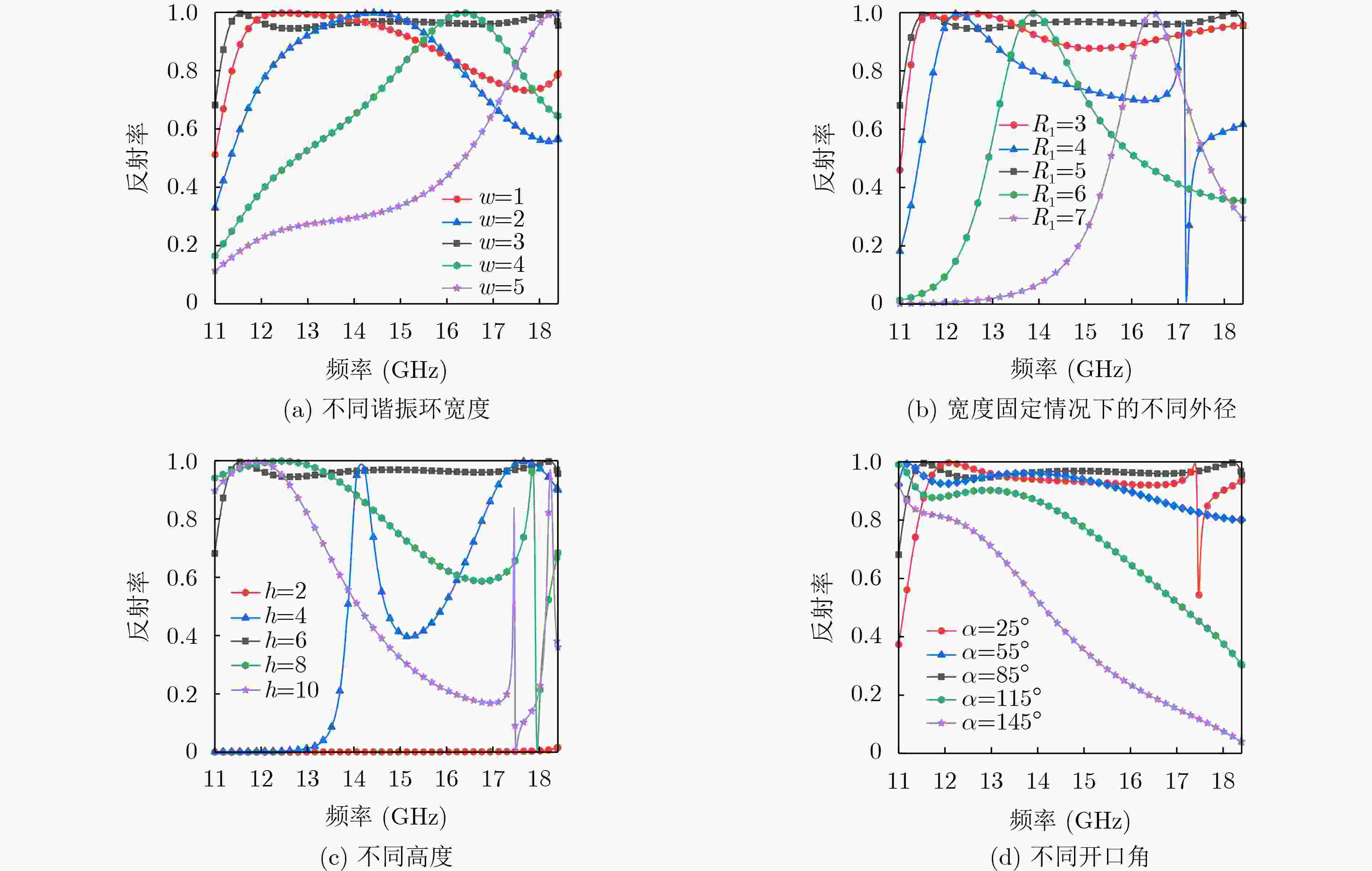 图  5  不同参数下谐振环交叉偏振反射的仿真结果