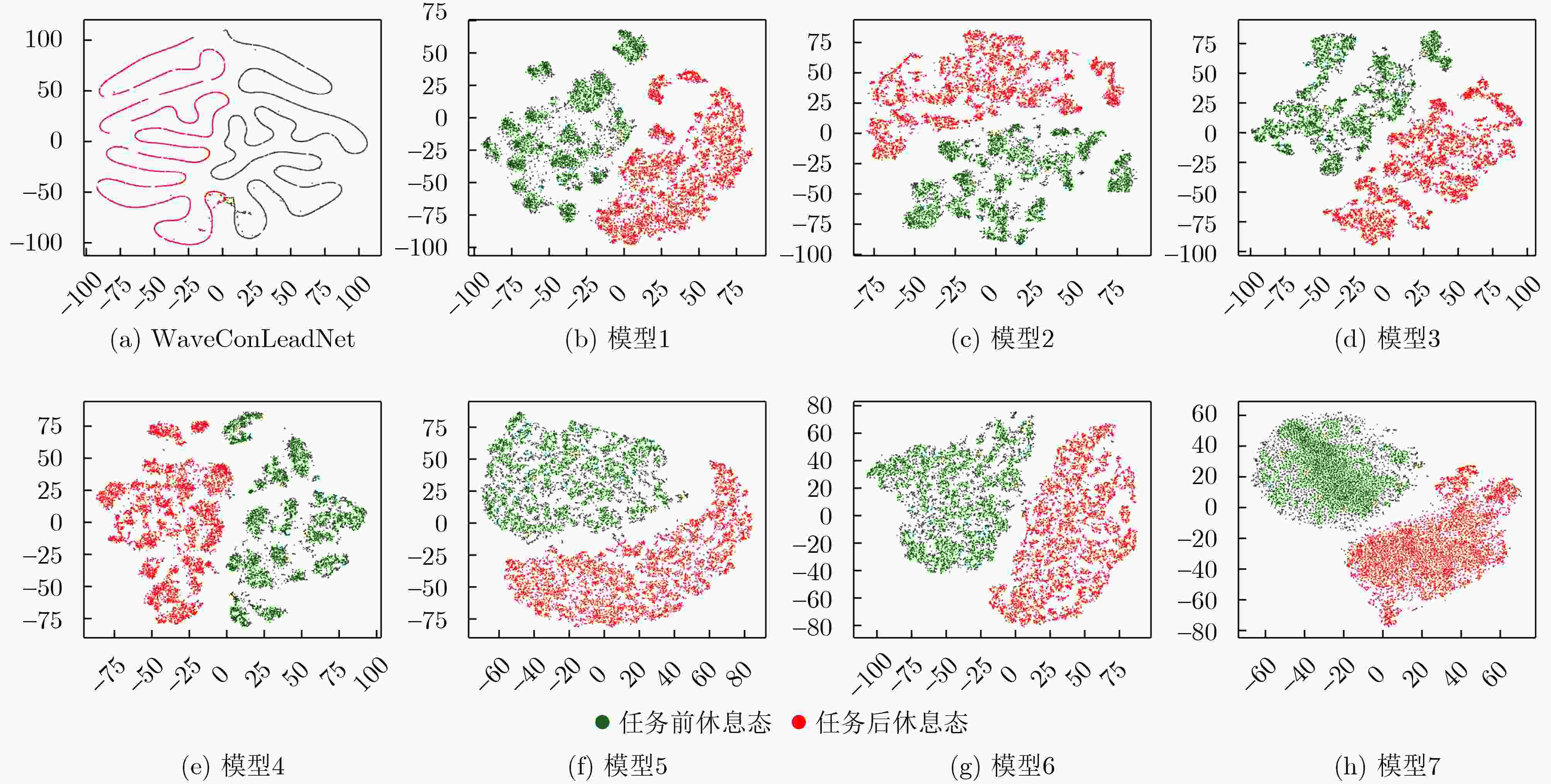 模型/指标 横向排序 竖向排序 accuracy F1 precision recall accuracy F1 precision recall WTATNet 98.39±0.56 98.39±0.53 98.38±0.53 98.40±0.52 97.97±0.50 97.97±0.50 97.97±0.50 97.98±0.49 模型1 96.61±0.55 96.60±0.55 96.59±0.56 96.64±0.54 96.12±0.74 96.11±0.73 96.10±0.73 96.16±0.74 模型2 97.03±0.60 97.02±0.61 96.99±0.63 97.15±0.54 96.91±0.54 96.90±0.54 96.86±0.55 97.03±0.51 模型3 97.38±0.33 97.38±0.33 97.36±0.32 97.41±0.35 94.54±5.37 94.46±5.55 94.57±5.22 95.28±3.82 模型4 96.73±0.61 96.72±0.61 96.69±0.62 96.81±0.59 95.66±0.57 95.65±0.58 95.60±0.61 95.81±0.47 模型5 96.57±0.47 96.57±0.47 96.57±0.47 96.58±0.47 96.91±0.68 96.91±0.68 96.89±0.68 96.95±0.67 模型6 97.15±0.64 97.14±0.64 97.13±0.65 97.18±0.62 97.20±0.46 97.20±0.46 97.19±0.46 97.24±0.44 模型7 96.81±0.34 96.80±0.34 96.78±0.35 96.86±0.32 97.05±0.42 97.05±0.42 97.02±0.42 97.12±0.43 模型8 96.61±0.73 96.61±0.73 96.59±0.74 96.65±0.73 / / / / 表 4 不同导联重排方法下WTATNet结果(平均值±标准差)(%)