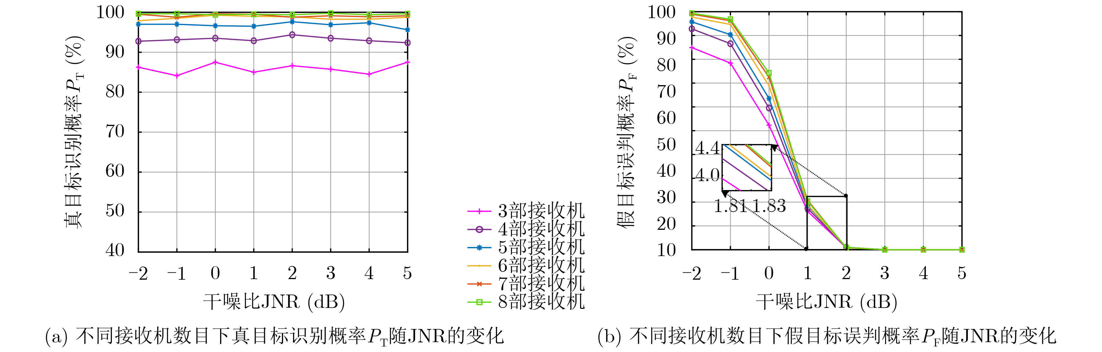 Objective   Deception jamming in airborne distributed radar systems presents a crucial challenge, as false echoes generated by Digital Radio Frequency Memory (DRFM) devices tend to mimic true target returns in amplitude, delay, and Doppler characteristics. These similarities complicate target recognition and subsequently degrade tracking accuracy. To address this problem, attention is directed to phase fluctuation signatures, which differ inherently between authentic scattering responses and synthesized interference replicas. Leveraging this distinction is proposed as a means of improving discrimination reliability under complex electromagnetic confrontation conditions.  Methods   A signal-level fusion discrimination algorithm is proposed based on phase fluctuation variance. Five categories of synchronization errors that affect the phase of received echoes are analyzed and corrected, including filter mismatch, node position errors, and equivalent amplitude-phase deviations. Precise matched filters are constructed through a fine-grid iterative search to eliminate residual phase distortion caused by limited sampling resolution. Node position errors are estimated using a DRFM-based calibration array, and equivalent amplitude-phase deviations are corrected through an eigendecomposition-based procedure. After calibration, phase vectors associated with target returns are extracted, and the variance of these vectors is taken as the discrimination criterion. Authentic targets present large phase fluctuations due to complex scattering, whereas DRFM-generated replicas exhibit only small variations.  Results and Discussions   Simulation results show that the proposed method achieves reliable discrimination under typical airborne distributed radar conditions. When the signal-to-noise ratio is 25 dB and the jamming-to-noise ratio is 3 dB, the misjudgment rate for false targets approaches zero when more than five receiving nodes are used (Fig. 10, Fig. 11). The method remains robust even when only a few false targets are present and performs better than previously reported approaches, where discrimination fails in single- or dual-false-target scenarios (Fig. 14). High recognition stability is maintained across different jamming-to-noise ratios and receiver quantities (Fig. 13). The importance of system-level error correction is confirmed, as discrimination accuracy declines significantly when synchronization errors are not compensated (Fig. 12).  Conclusions   A phase-fluctuation-based discrimination algorithm for airborne distributed radar systems is presented. By correcting system-level errors and exploiting the distinct fluctuation behavior of phase signatures from real and false echoes, the method achieves reliable deception-jamming discrimination in complex electromagnetic environments. Simulations indicate stable performance under varying numbers of false targets, demonstrating good applicability for distributed configurations. Future work will aim to enhance robustness under stronger environmental noise and clutter.
