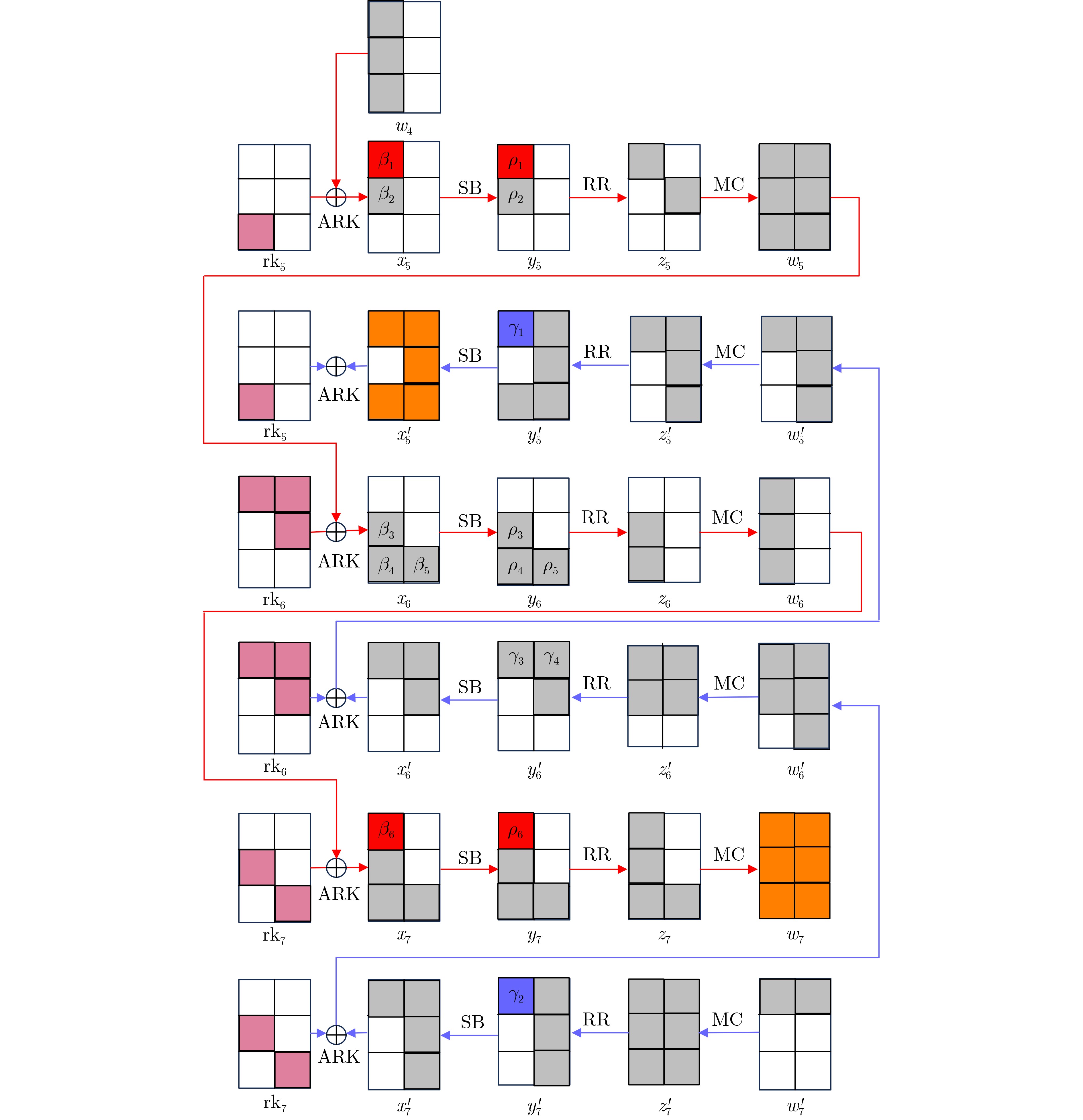 Objective Twisted Generalized Reed-Solomon (TGRS) codes have attracted considerable attention in coding theory due to their flexible structural properties. However, studies on their extended codes remain limited. Existing results indicate that only a small number of works examine extended TGRS codes, leaving gaps in the understanding of their error-correcting capability, duality properties, and applications. In addition, previously proposed parity-check matrix forms for TGRS codes lack clarity and do not cover all parameter ranges. In particular, the case h = 0 is not addressed, which limits applicability in scenarios requiring diverse parameter settings. Constructing non-Generalized Reed-Solomon (non-GRS) codes is of interest because such codes resist Sidelnikov-Shestakov and Wieschebrink attacks, whereas GRS codes are vulnerable. Maximum Distance Separable (MDS) codes, self-orthogonal codes, and almost self-dual codes are valued for their error-correcting efficiency and structural properties. MDS codes achieve the Singleton bound and are essential for distributed storage systems that require data reliability under node failures. Self-orthogonal and almost self-dual codes, due to their duality structures, are applied in quantum coding, secret sharing schemes, and secure multi-party computation. Accordingly, this paper aims to: (1) characterize the MDS and Almost MDS (AMDS) properties of double-twisted GRS codes \begin{document}$ {C}_{k,\boldsymbol{h},\boldsymbol{\eta }}(\boldsymbol{\alpha },\boldsymbol{v}) $\end{document} and their extended codes \begin{document}$ {C}_{k,\boldsymbol{h},\boldsymbol{\eta }}(\boldsymbol{\alpha },\boldsymbol{v},{\boldsymbol{\infty}}) $\end{document}; (2) derive explicit and unified parity-check matrices for all valid parameter ranges, including h = 0; (3) establish non-GRS properties under specific parameter conditions; (4) provide necessary and sufficient conditions for self-orthogonality of the extended codes and almost self-duality of the original codes; and (5) construct a class of almost self-dual double-twisted GRS codes with flexible parameters for secure and reliable communication systems. Methods The study is based on algebraic coding theory and finite field methods. Explicit parity-check matrices are derived using properties of polynomial rings over \begin{document}$ {F}_{q} $\end{document}, Vandermonde matrix structures, and polynomial interpolation. The Schur product method is applied to determine non-GRS properties by comparing the dimensions of the Schur squares of the codes and their duals with those of GRS codes. Linear algebra and combinatorial techniques are used to characterize MDS and AMDS properties. Conditions are obtained by analyzing the nonsingularity of generator-matrix submatrices and solving systems involving symmetric sums of finite field elements. These conditions are expressed using the sets \begin{document}$ {S}_{k}(\boldsymbol{\alpha },\boldsymbol{\eta }) $\end{document},\begin{document}$ {L}_{k}(\boldsymbol{\alpha },\boldsymbol{\eta }) $\end{document}, and \begin{document}$ {D}_{k}(\boldsymbol{\alpha },\boldsymbol{\eta }) $\end{document}. Duality theory is used to study orthogonality. A code C is self-orthogonal if \begin{document}$ C\subseteq {C}^{\bot } $\end{document} and its generator matrix satisfies \begin{document}$ {\boldsymbol{G}}{{\boldsymbol{G}}}^{\rm T}=\boldsymbol{O} $\end{document}. For almost self-dual codes with odd length and dimension-(n-1)/2, this condition is combined with the structure of the dual code and symmetric sum relations of αi to obtain necessary and sufficient conditions. Results and Discussions For MDS and AMDS properties, the following results are obtained. The extended double-twisted GRS code \begin{document}$ {C}_{k,\boldsymbol{h},\boldsymbol{\eta }}(\boldsymbol{\alpha },\boldsymbol{v},{\boldsymbol{\infty}}) $\end{document} is MDS if and only if \begin{document}$ 1\notin {S}_{k}(\boldsymbol{\alpha },\boldsymbol{\eta }) $\end{document} and \begin{document}$ 1\notin {L}_{k}(\boldsymbol{\alpha },\boldsymbol{\eta }) $\end{document}. The double-twisted GRS code \begin{document}$ {C}_{k,\boldsymbol{h},\boldsymbol{\eta }}(\boldsymbol{\alpha },\boldsymbol{v}) $\end{document} is AMDS if and only if \begin{document}$ 1\in {S}_{k}(\boldsymbol{\alpha },\boldsymbol{\eta }) $\end{document} and \begin{document}$ (0,1)\notin {D}_{k}(\boldsymbol{\alpha },\boldsymbol{\eta }) $\end{document}. The code \begin{document}$ {C}_{k,\boldsymbol{h},\boldsymbol{\eta }}(\boldsymbol{\alpha },\boldsymbol{v}) $\end{document}\begin{document}$ (0,1)\in {D}_{k}(\boldsymbol{\alpha },\boldsymbol{\eta }) $\end{document}. Unified parity-check matrices of \begin{document}$ {C}_{k,\boldsymbol{h},\boldsymbol{\eta }}(\boldsymbol{\alpha },\boldsymbol{v}) $\end{document} and \begin{document}$ {C}_{k,\boldsymbol{h},\boldsymbol{\eta }}(\boldsymbol{\alpha },\boldsymbol{v},{\boldsymbol{\infty}}) $\end{document} are derived for all \begin{document}$ 0\leq h\leq k-1 $\end{document}, removing previous restrictions that exclude h = 0. For non-GRS properties, when \begin{document}$ k\geq 4 $\end{document} and \begin{document}$ n-k\geq 4 $\end{document}, both \begin{document}$ {C}_{k,\boldsymbol{h},\boldsymbol{\eta }}(\boldsymbol{\alpha },\boldsymbol{v}) $\end{document} and its extended code \begin{document}$ {C}_{k,\boldsymbol{h},\boldsymbol{\eta }}(\boldsymbol{\alpha },\boldsymbol{v},{\boldsymbol{\infty}}) $\end{document} are non-GRS for both \begin{document}$ 2k\geq n $\end{document} or \begin{document}$ 2k \lt n $\end{document}. This conclusion follows from the fact that the dimensions of their Schur squares exceed those of the corresponding GRS codes, which ensures resistance to Sidelnikov-Shestakov and Wieschebrink attacks. Regarding orthogonality, the extended code \begin{document}$ {C}_{k,\boldsymbol{h},\boldsymbol{\eta }}(\boldsymbol{\alpha },\boldsymbol{v},{\boldsymbol{\infty}}) $\end{document} with \begin{document}$ h=k-1 $\end{doc