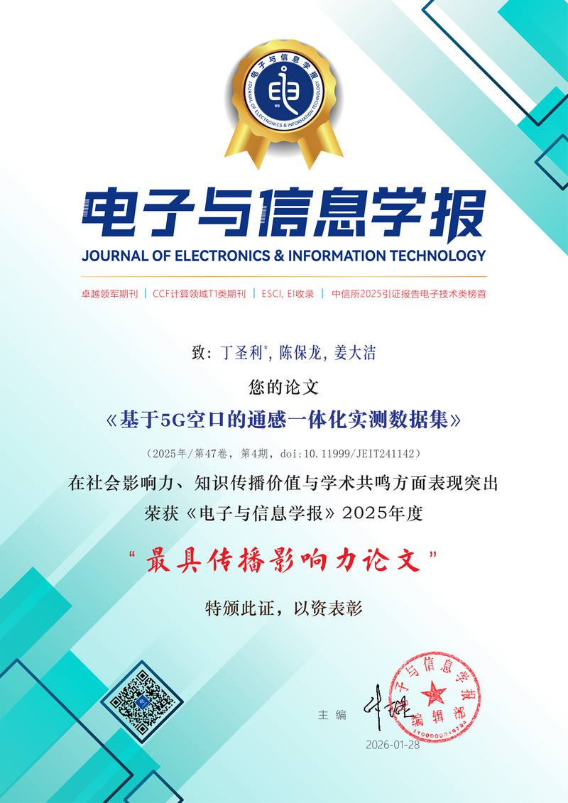 在此,我们衷心祝贺与感谢所有入选论文的作者及其所在团队。正是你们的前沿探索、扎实研究与真诚分享,推动了学科的发展与知识的传播,也为《电子与信息学报》注入了持续的生机与活力。期待未来继续携手,共同为电子信息领域的学术繁荣与创新进步贡献力量。